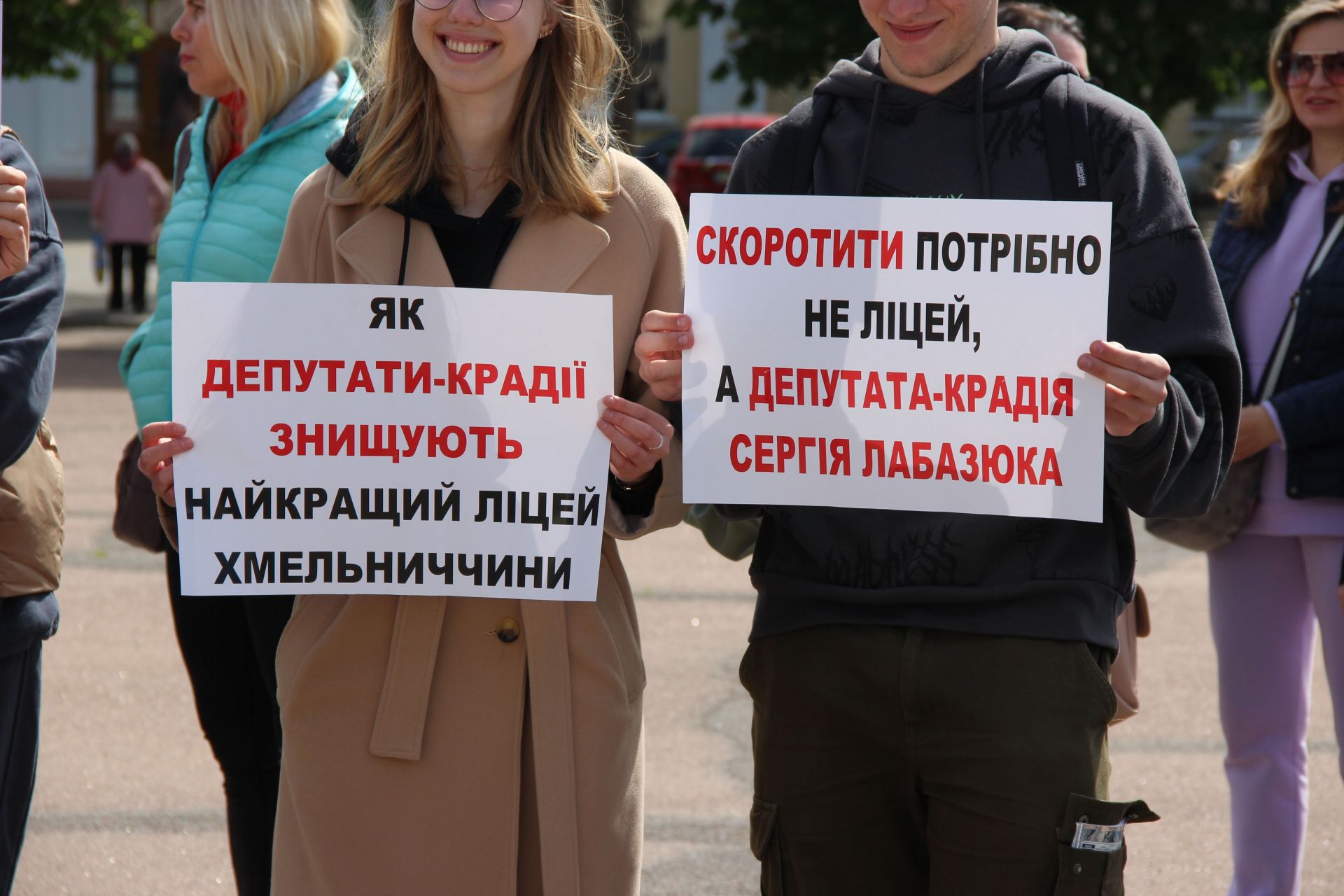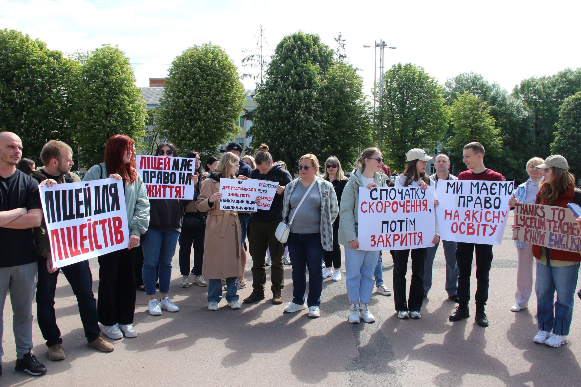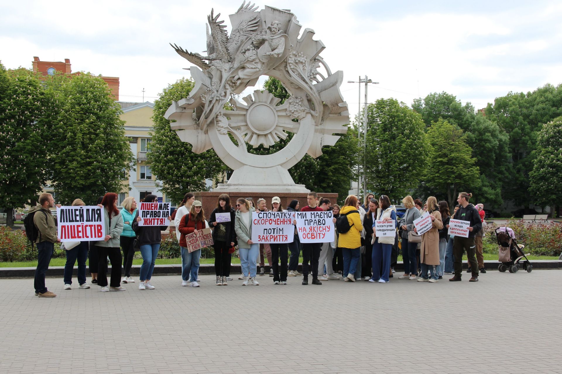 – Вже прийняте рішення про скорочення і сказано, що на наступний рік бюджету немає, хоча бюджет на наступний рік ще навіть не приймався. Бюджет взагалі на освіту складає понад 55% від бюджету Хмельницької області в принципі. Це – 186 мільйонів гривень. І в нас логічне питання: як з такою великою сумою, великими коштами немає грошей на найкращий ліцей Хмельниччини, – розповіла ініціаторка мітингу, випускниця ліцею Юлія Черешня.