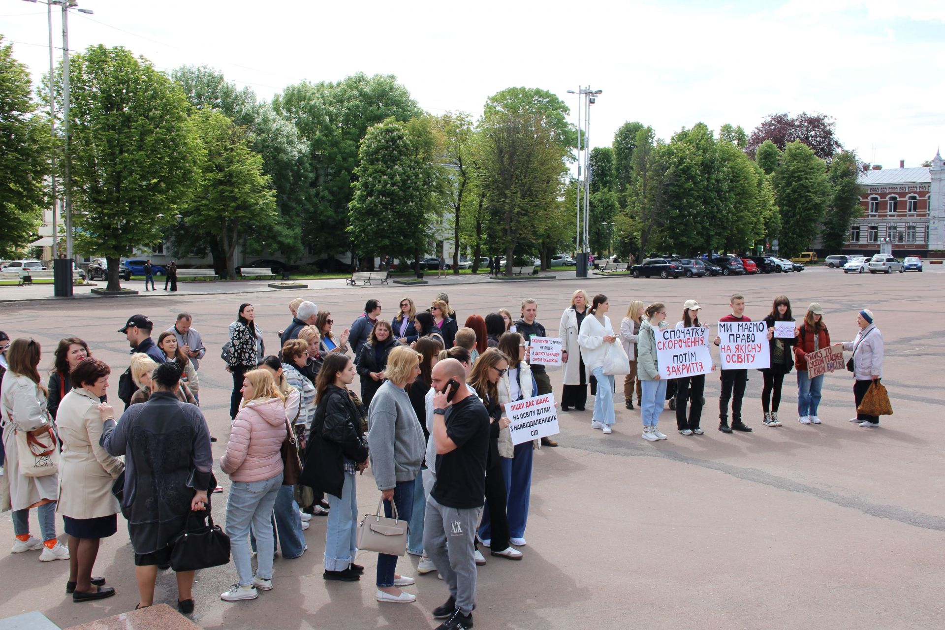 На протест прийшли батьки, викладачі, випускники та учні навчального закладу.