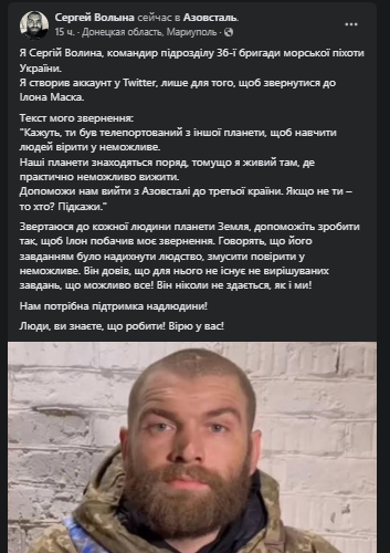 Вчора, 11 травня, стало відомо, що командир підрозділу 36-ї бригади морської піхоти України звернувся до Ілона Маска. Захисник просив допомогти вийти їм з “Азовсталі”. А також прохав усіх людей зробити так, аби Ілон Маск побачив звернення українського військового.