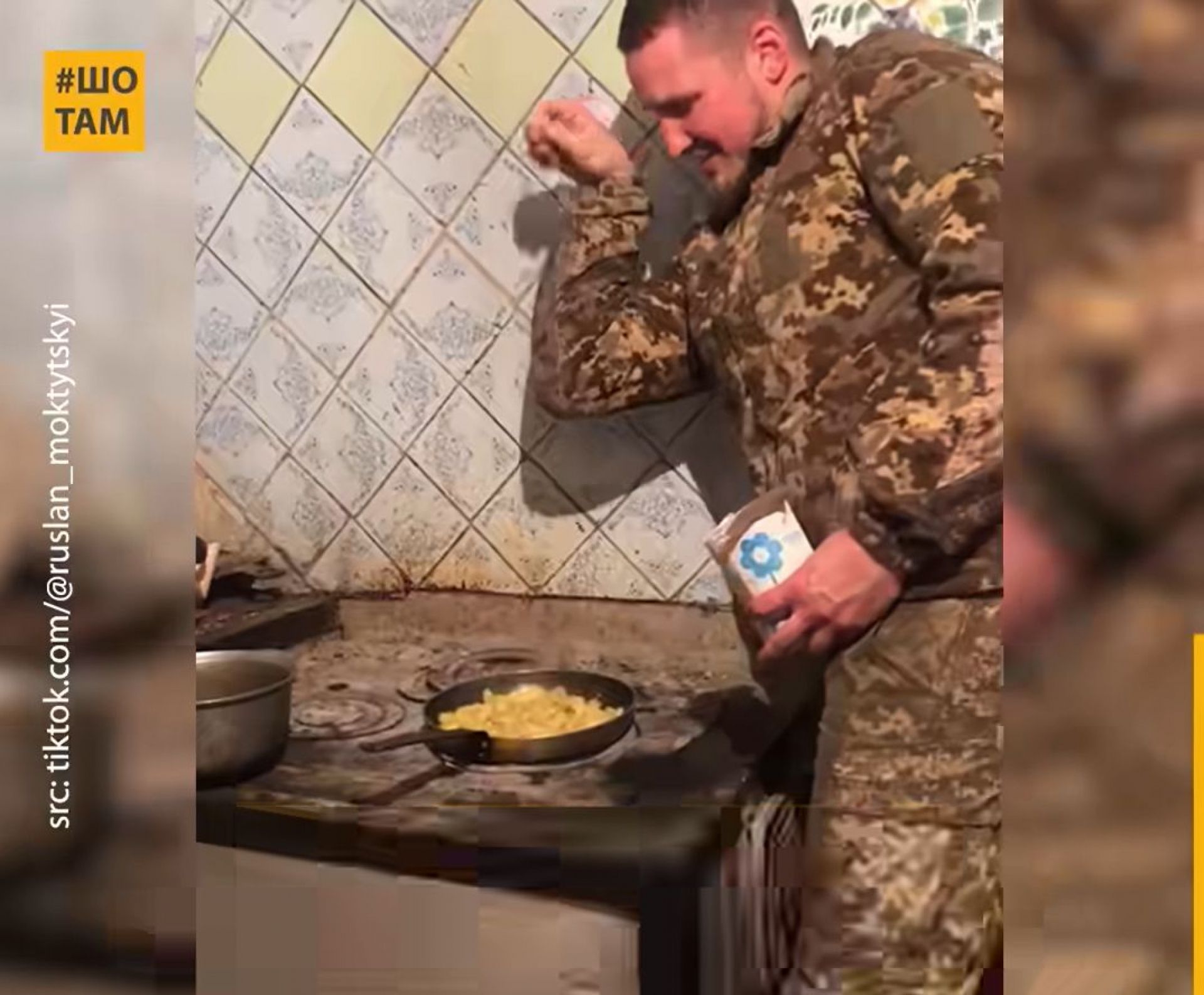 Хмельничанин Руслан Мокрицький пішов на фронт з початком повномасштабної війни. Готування їжі, у вільний від бойових завдань час, стало для воїна відпочинком, а зйомка кулінарних рецептів і викладання в соцмережах — справжньою терапією. Відео з його польовою кухнею набирають мільйони переглядів у TikTok.