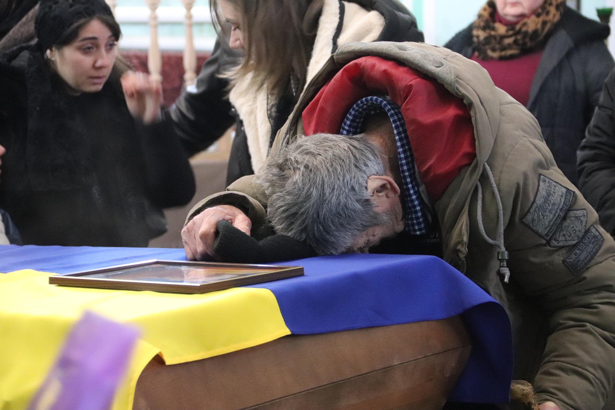 Воїна провели в останню дорогу з усіма почестями. Громада прощалась з Героєм навколішки.