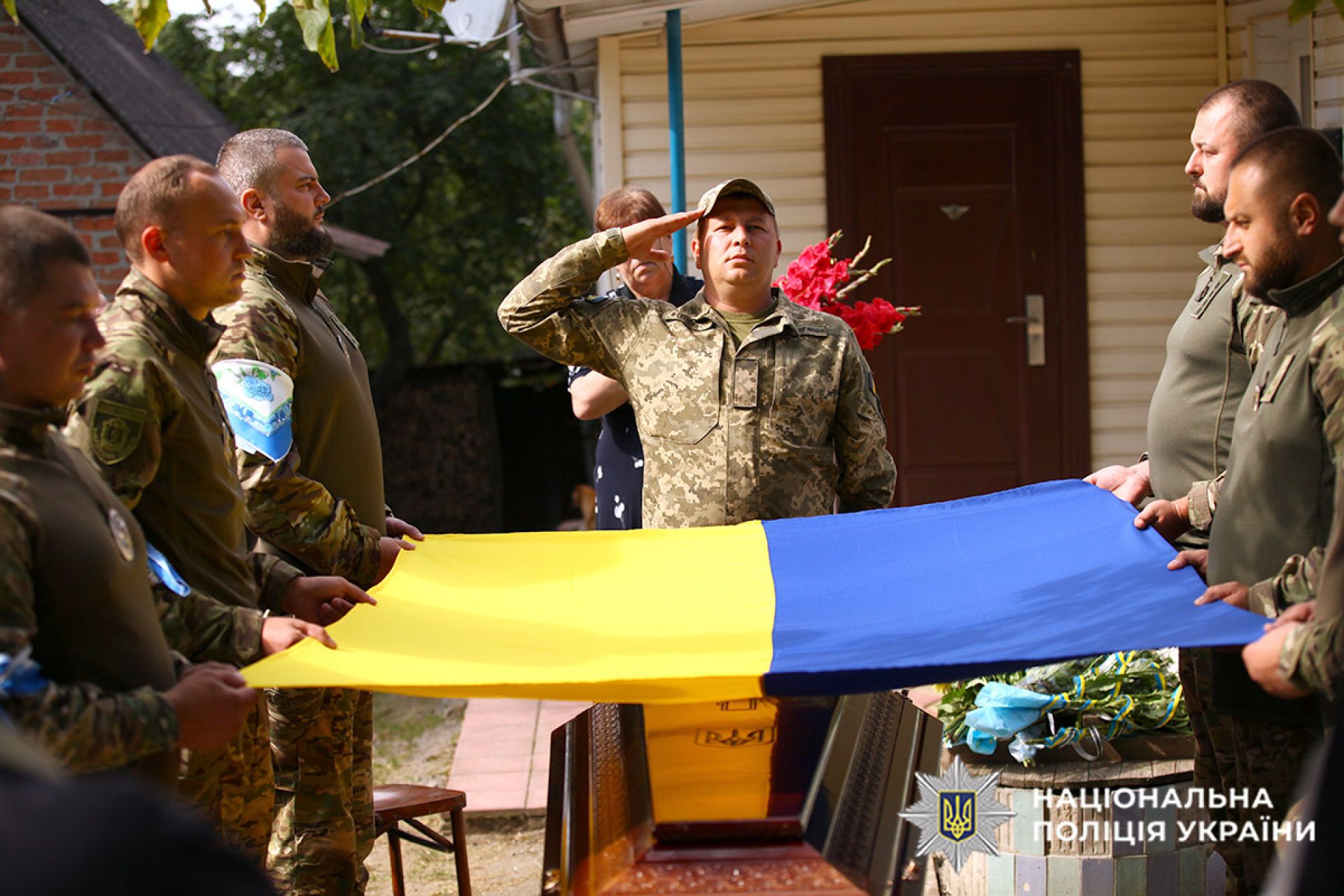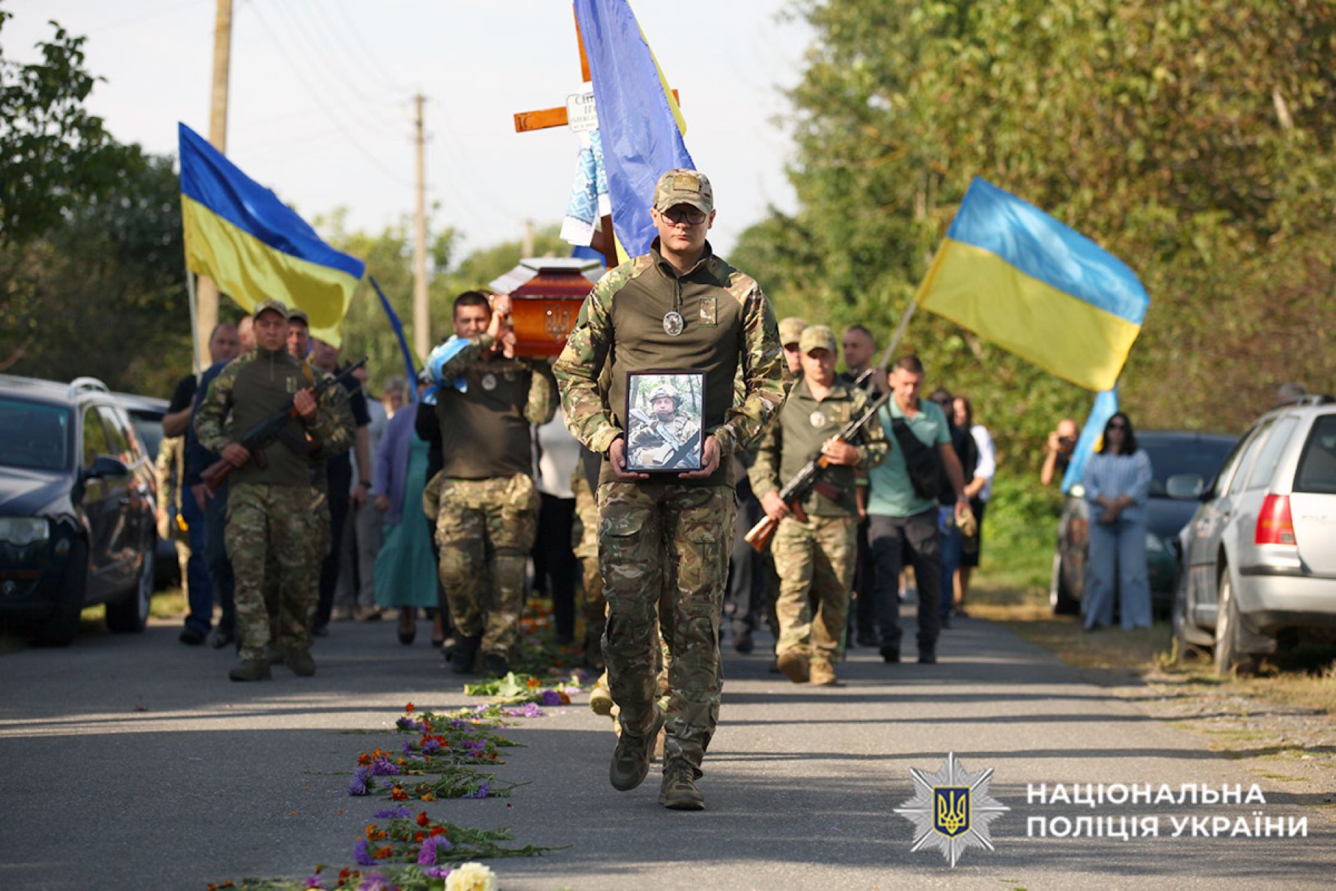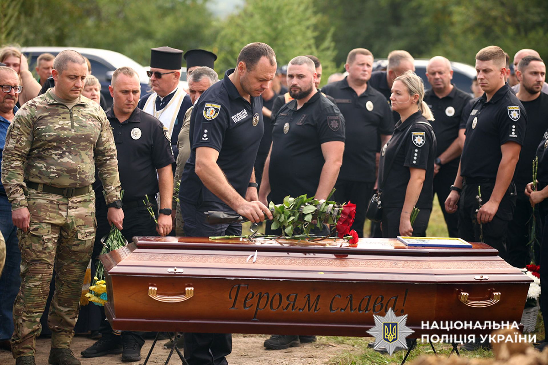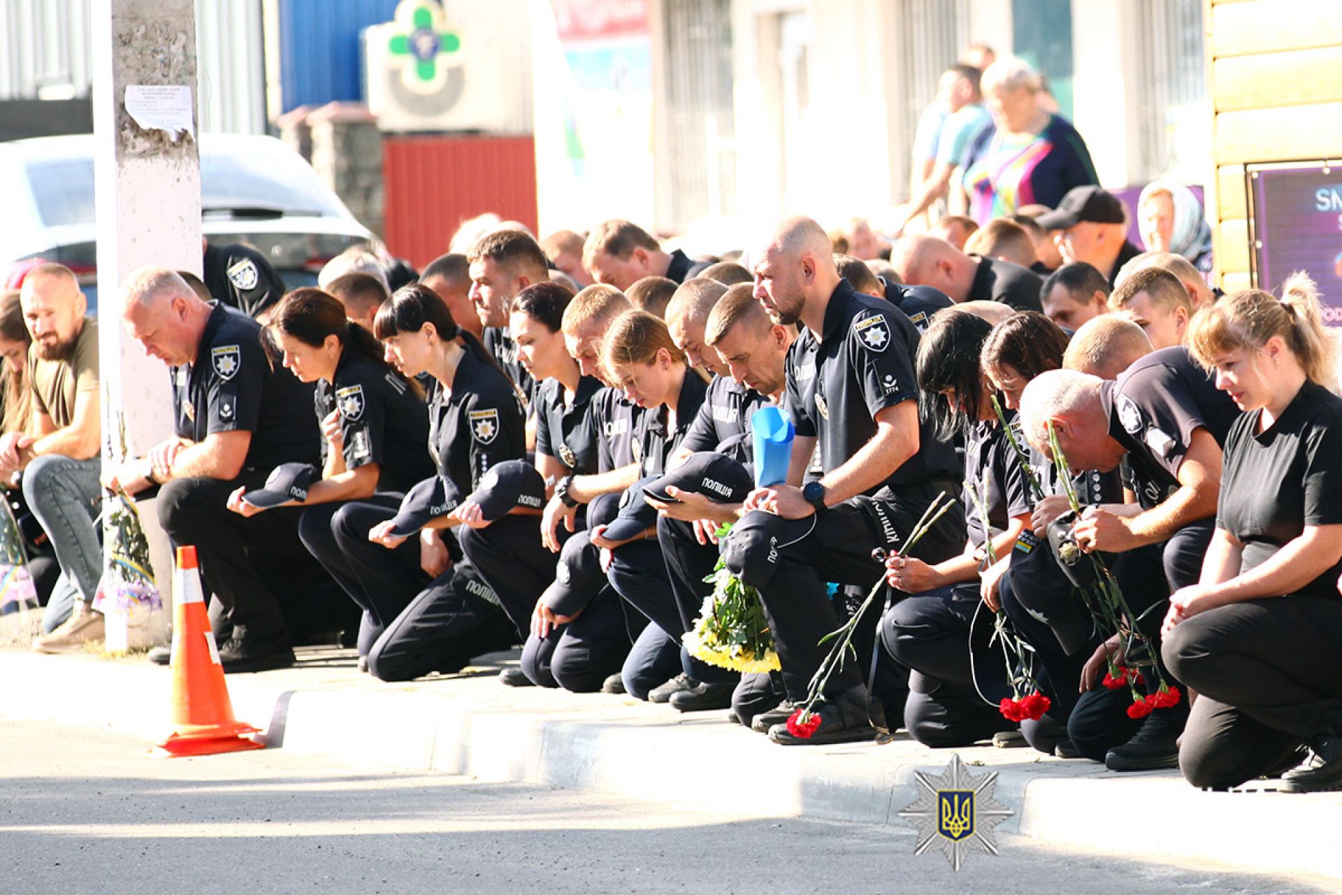 Сьогодні його рідні, друзі, колеги та земляки зібралися, щоб віддати останню шану поліцейському. Уздовж шляху траурної процесії люди зустрічали Героя з квітами та на колінах.