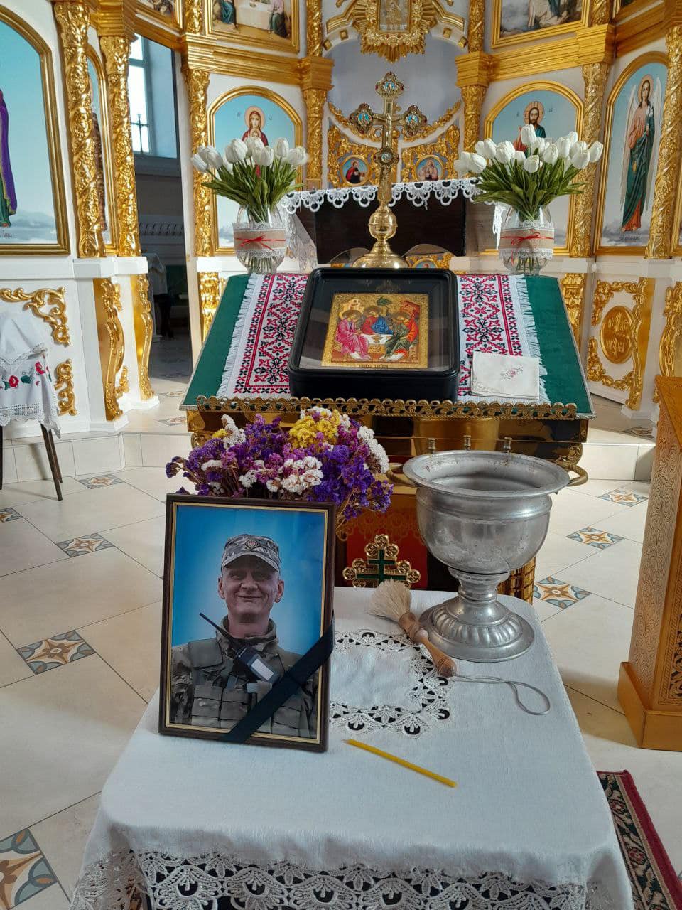 О 11-й годині кортеж з тілом полеглого земляка прибув в місто Полонне. О 12-й годині у храмі Святої Трійці відбулась заупокійна служба.
