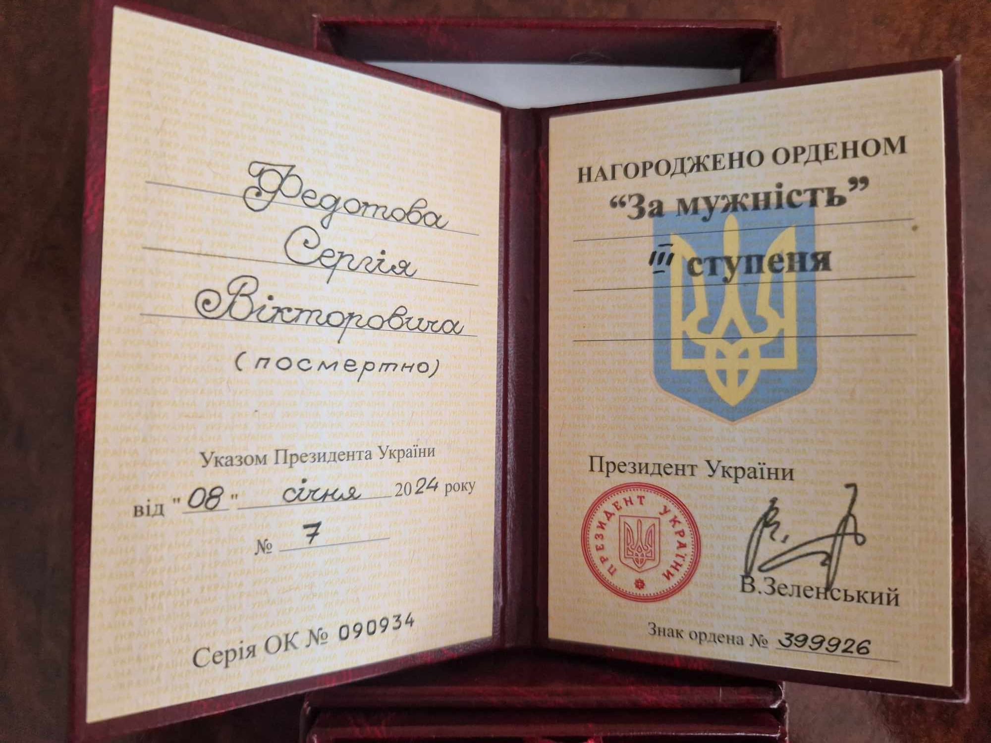 Сергія Федотова з Хмельниччини посмертно відзначили Орденом «За мужність» ІІІ ступеня.