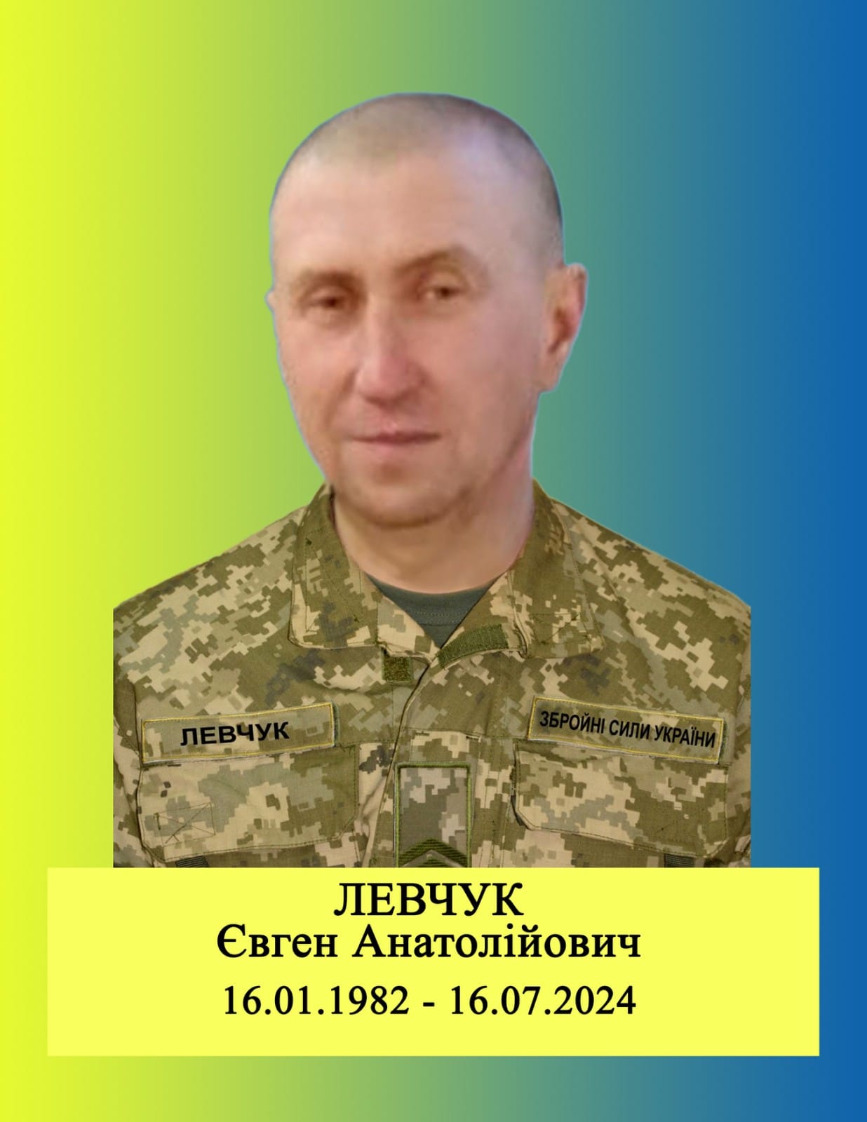 На Старокостянтинівщині 22 липня прощалися із захисником України, бойовим медиком, молодшим сержантом Євгеном Анатолійовичем Левчуком.