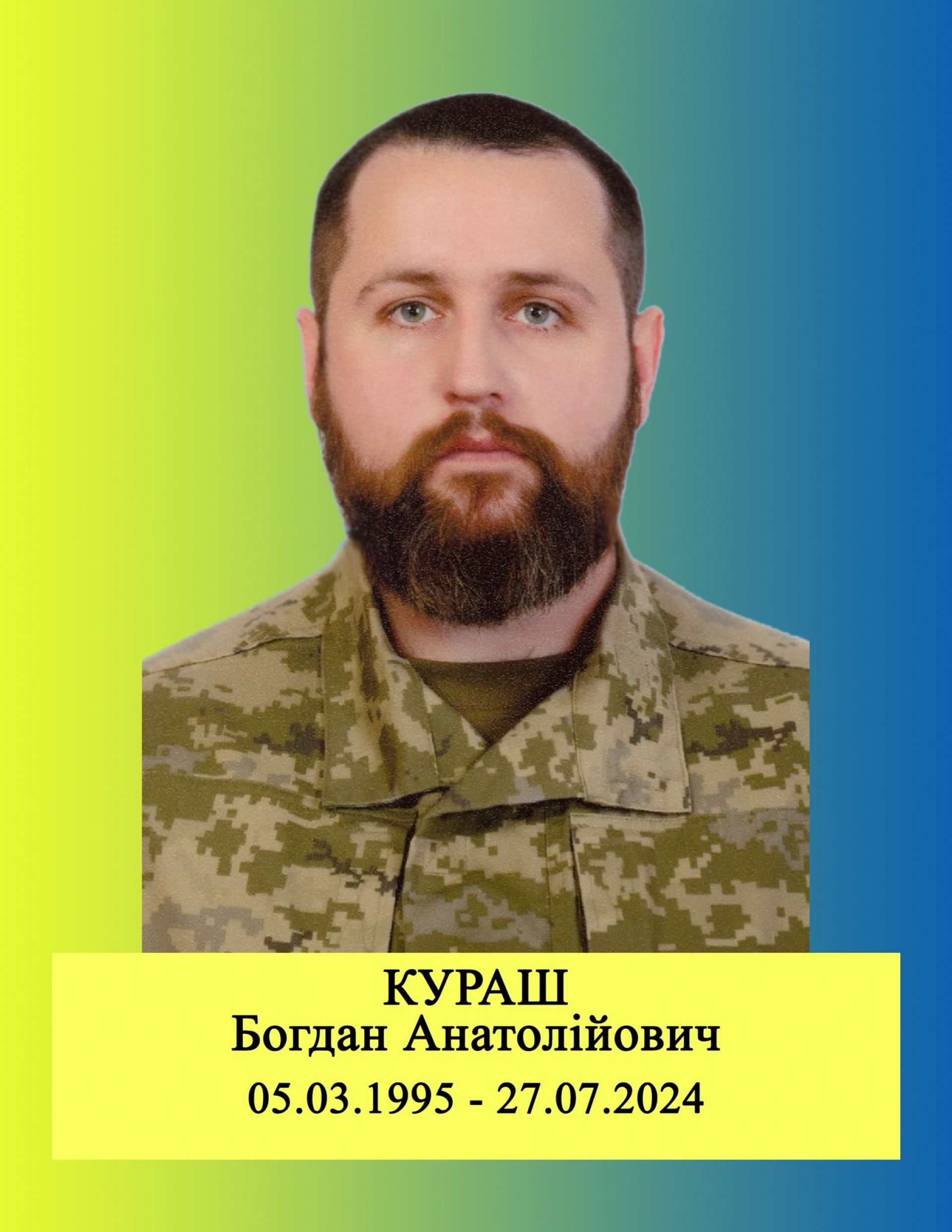 30-го липня у Старокостянтинівській громаді прощалися з 29-річним солдатом Богданом Курашем. Про це розповіли у Старокостянтинівській міській раді.