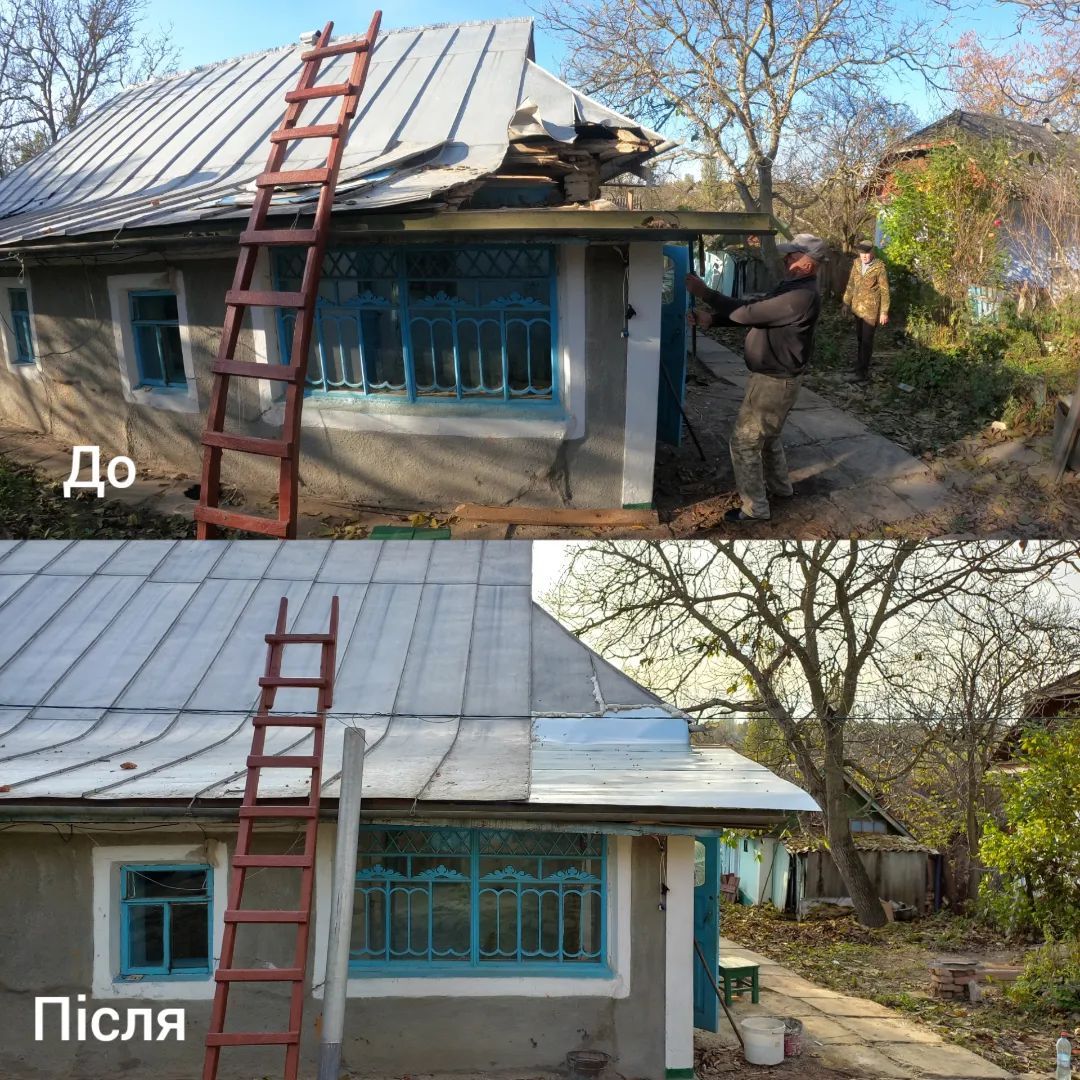 За день волонтери відремонтувати пошкоджений дах, перекрили баками, зашили дошками, металом. Розібрати завалений сарай.