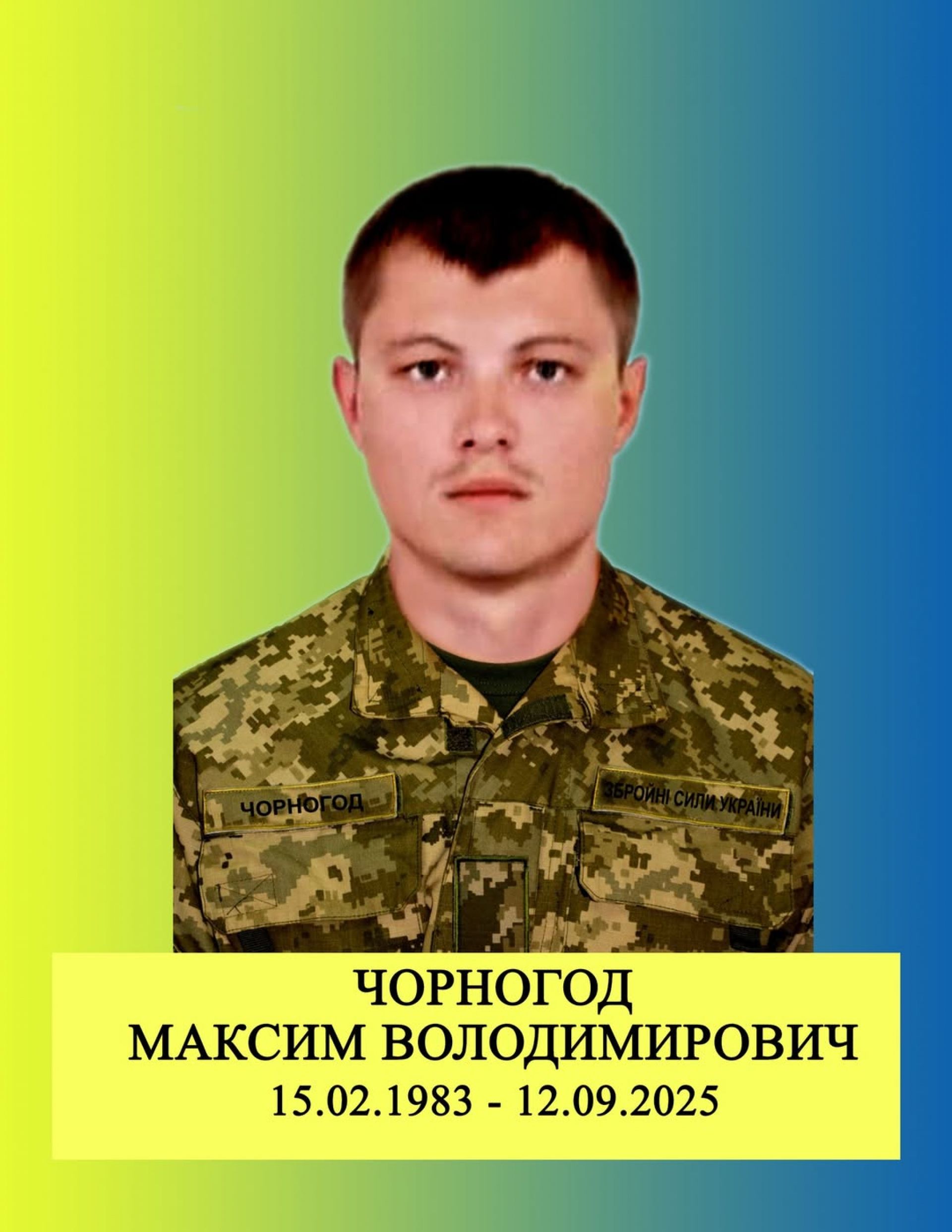 Сьогодні, 23 вересня у Старокостянтинівській громаді прощаються із захисником України — солдатом Чорногодом Максимом Володимировичем, 1983 року народження.