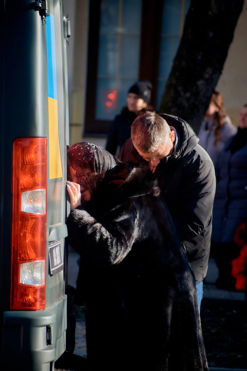 Тіло Героя зустріли живим коридором центральними вулицями міста. Прощались із захисником біля будинку, де він проживав, а пізніше – у Будинку офіцерів.