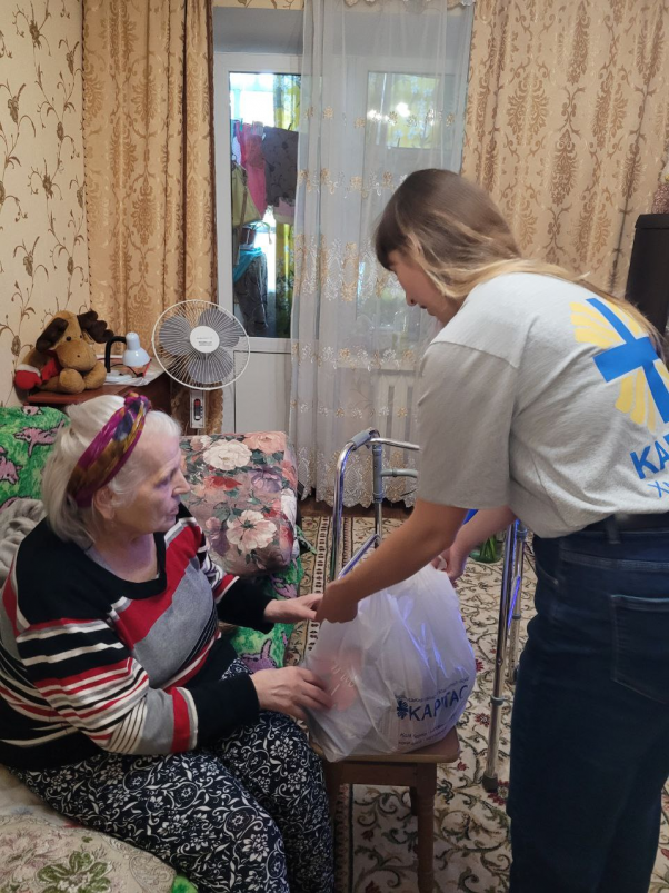 Скажімо, щонеділі в Хмельницькому роздають продуктові набори для потребуючих, а волонтери відвідують переселенців, які зупинилися у місті. Їм надають психологічну підтримку, забезпечують медикаментами й засобами першої потреби.