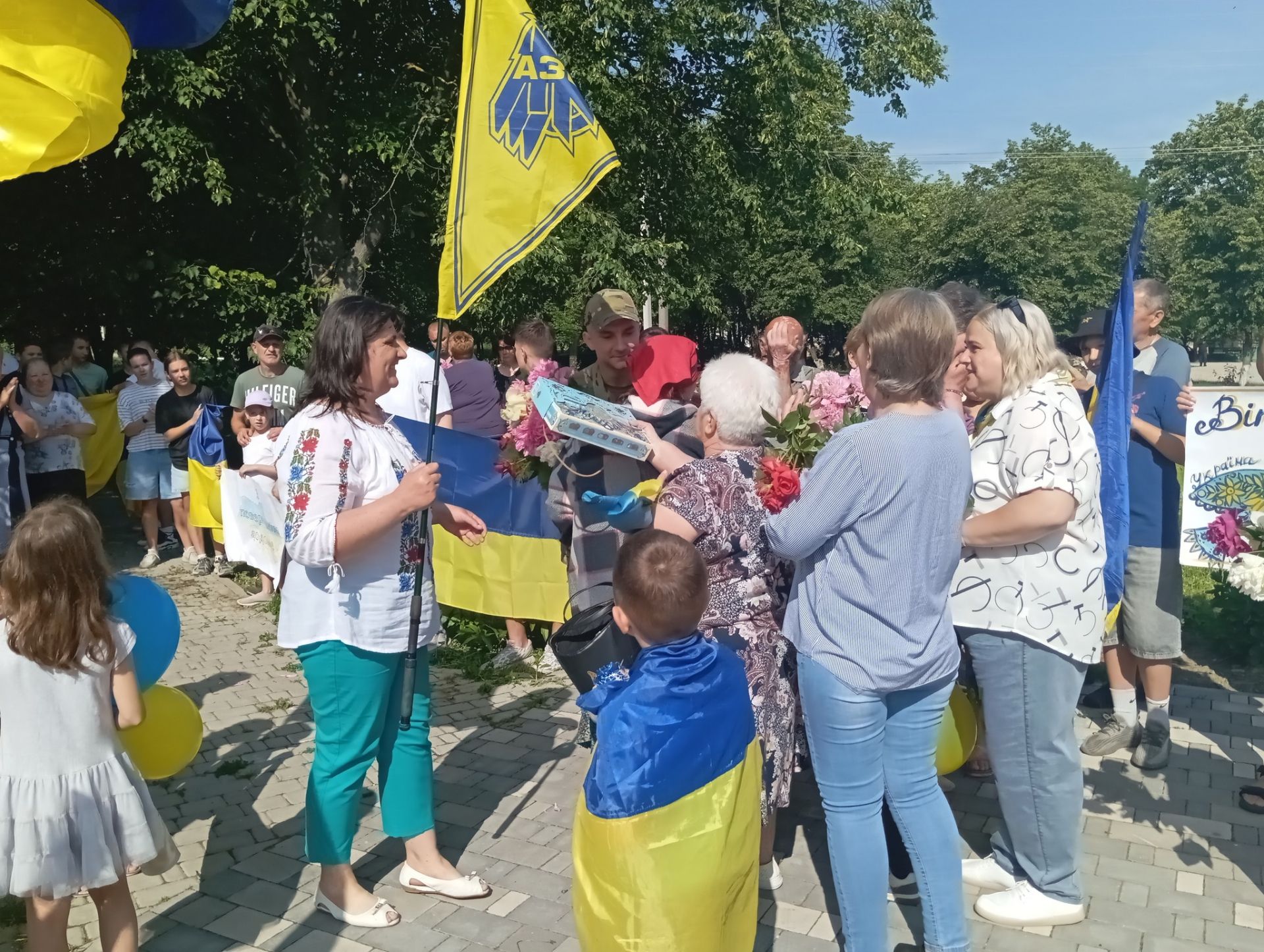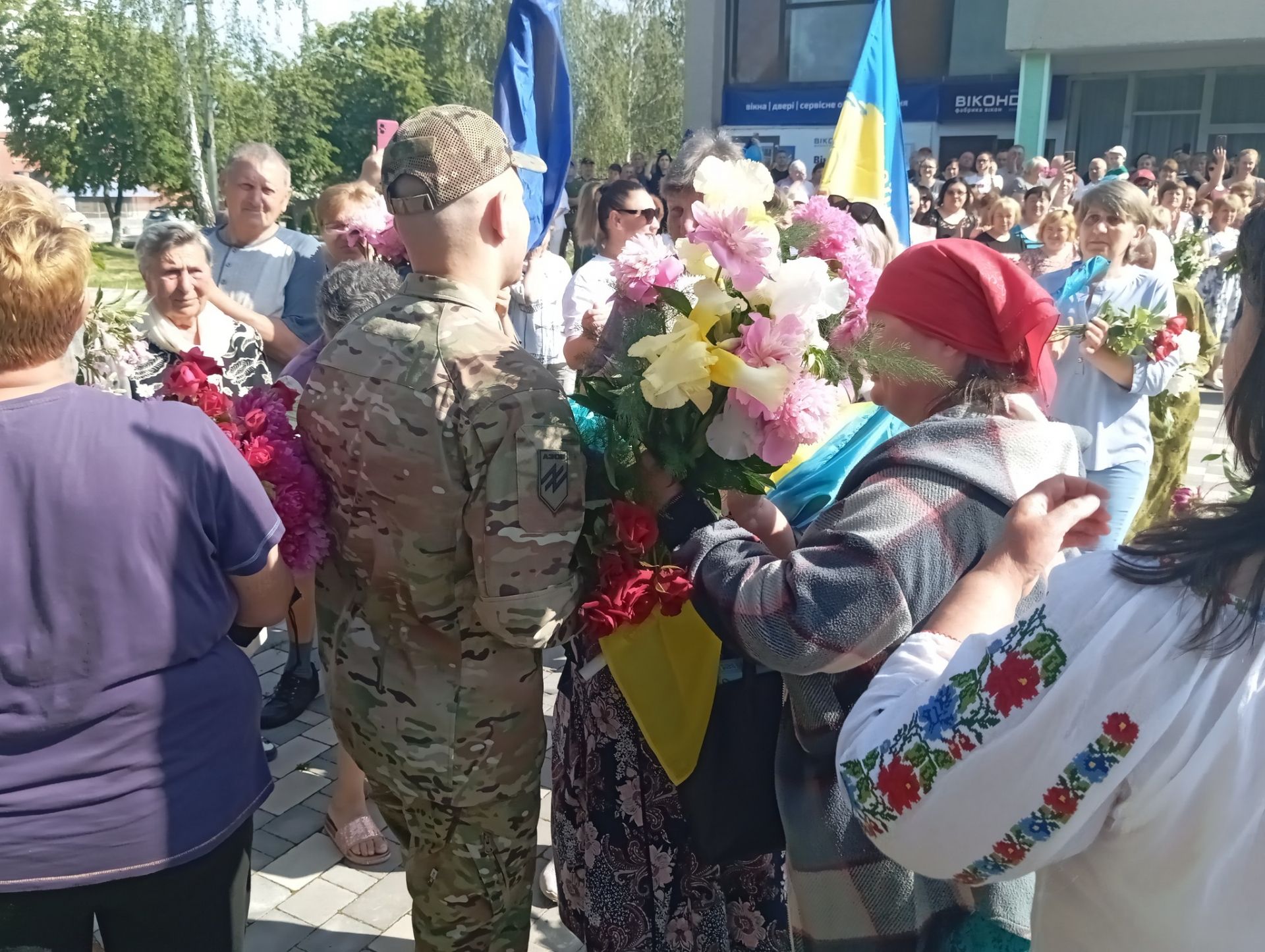 "Вся громада об’єдналася, щоб зустріти Павла короваєм на вишитому рушнику, дитячими кульками й квітами, маршем оркестру та оваціями громади. Ця зустріч стала справжнім святом Перемоги життя над темрявою", — розповідають у селищній раді.