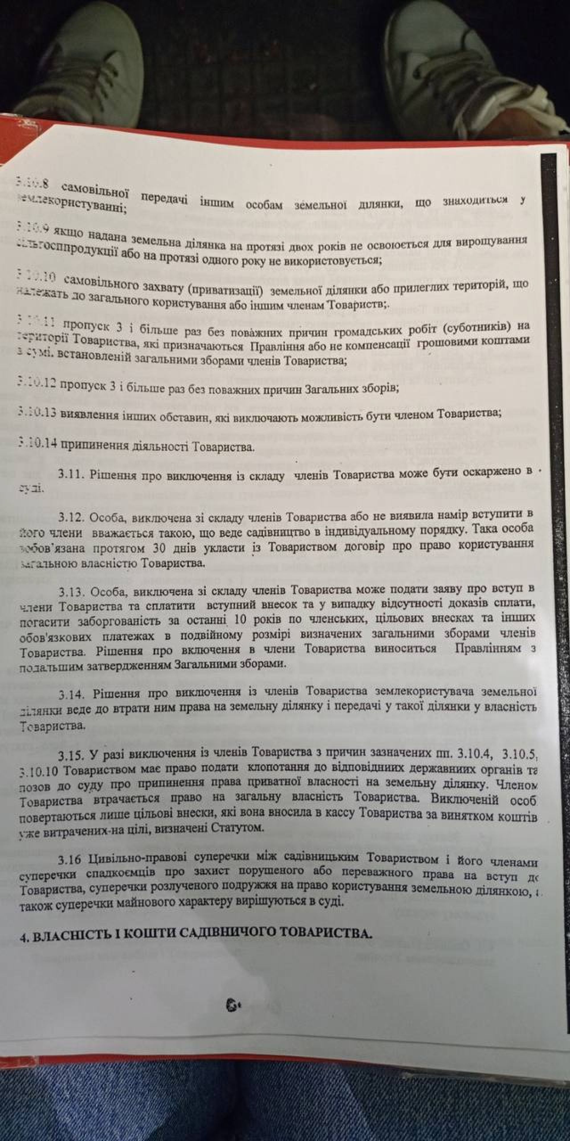 – Найперше коли я попросила статут це коли ми прийшли сюди в масив – 2018. Коли я писала заяву на вступ в СТ я просила статут: «ой в мене десь немає». Вже так конкретно, що дійсно треба був статут, це тоді коли були збори, як почалось із цією передачею світла і цими погрозами – ми своїх прав не знаємо. Вона тільки апелює цим статутом, якимись пунктами, а ми ж то не знаємо. Він не зареєстрований ніде, нічого, – розповіла Ірина.
