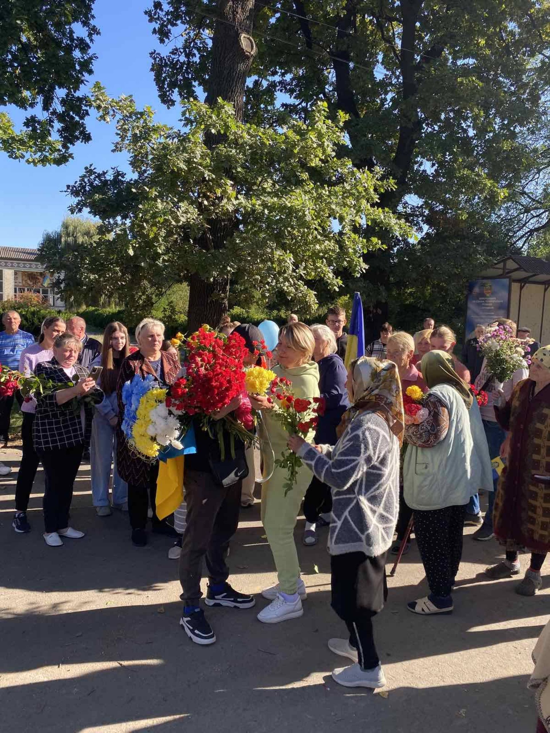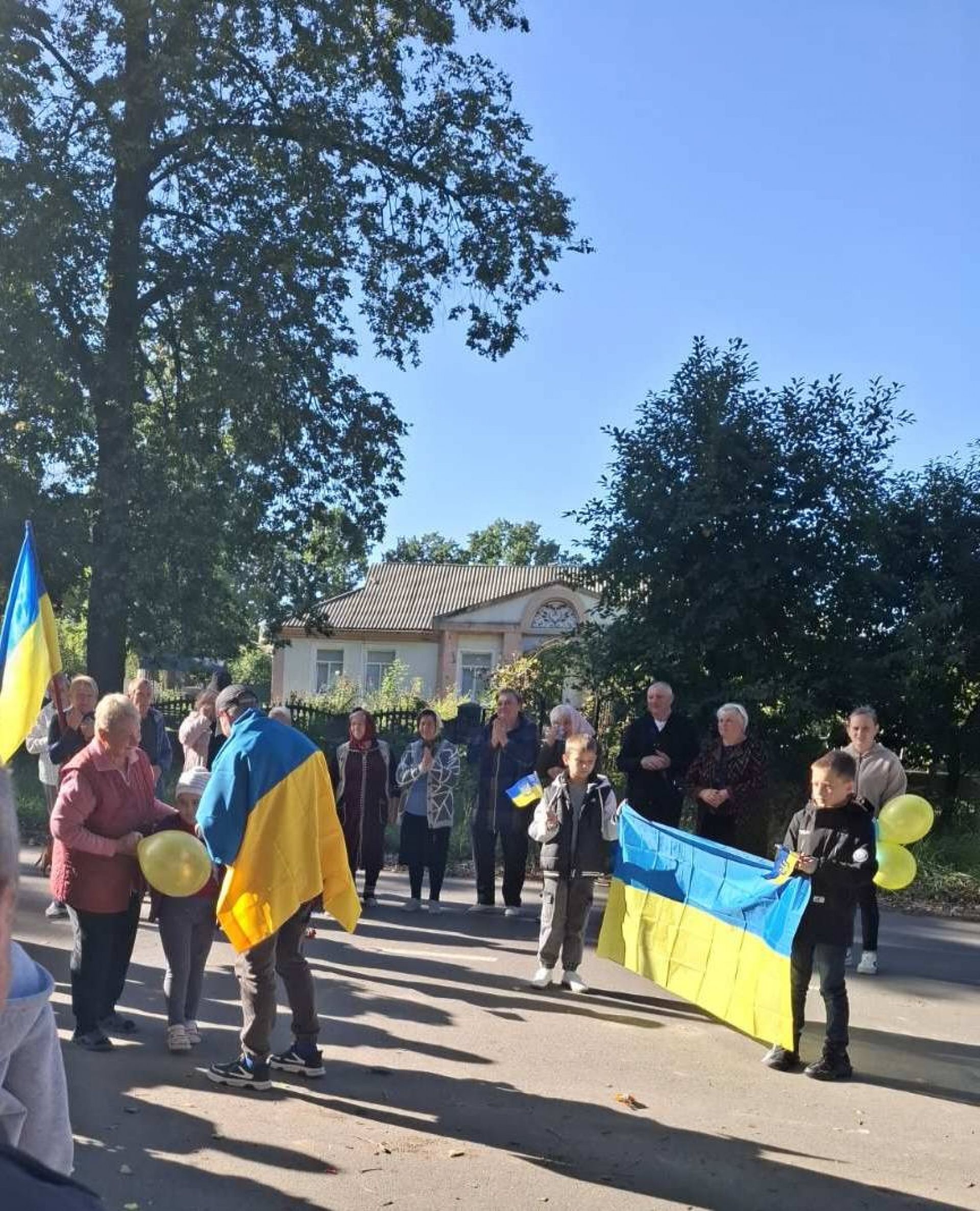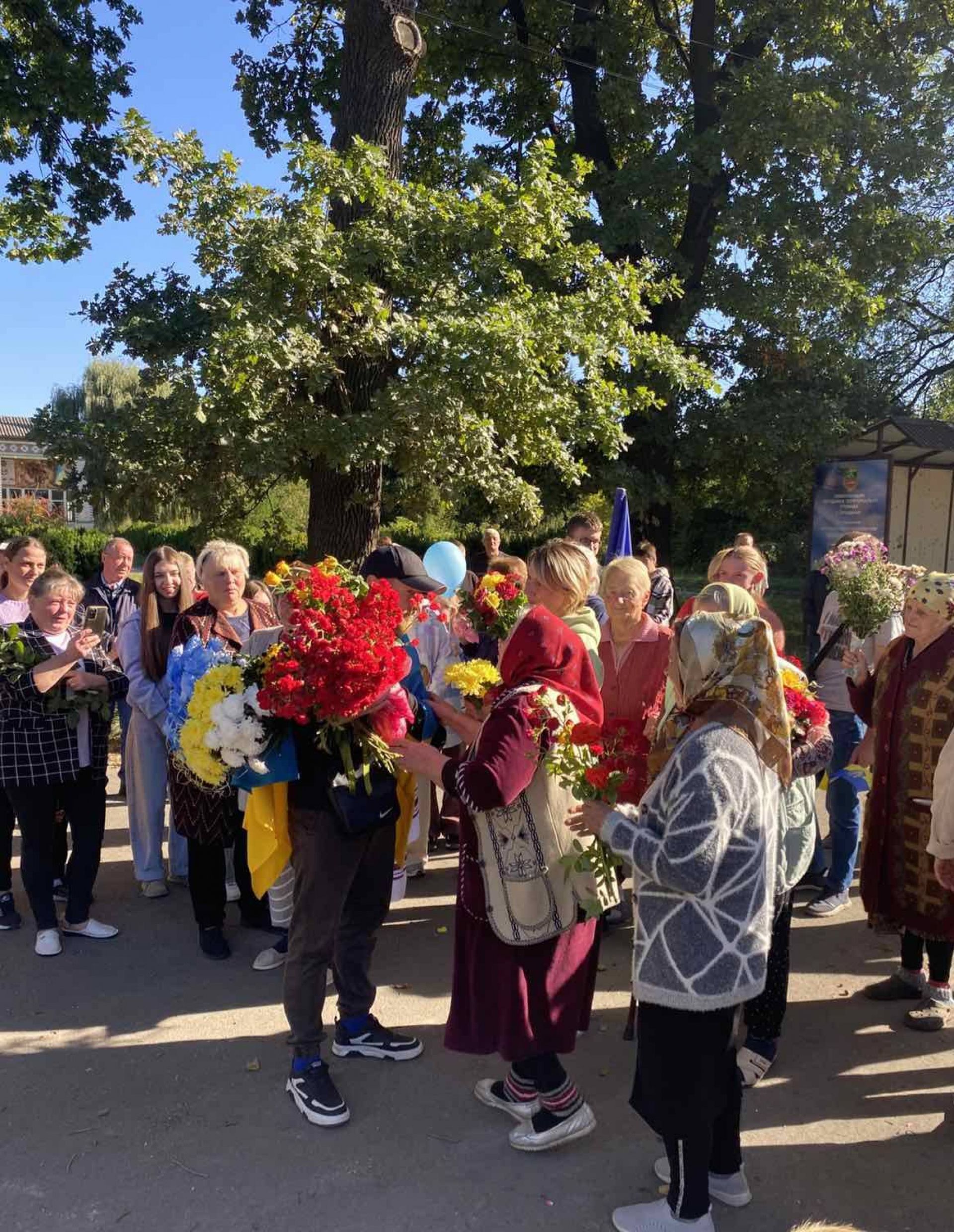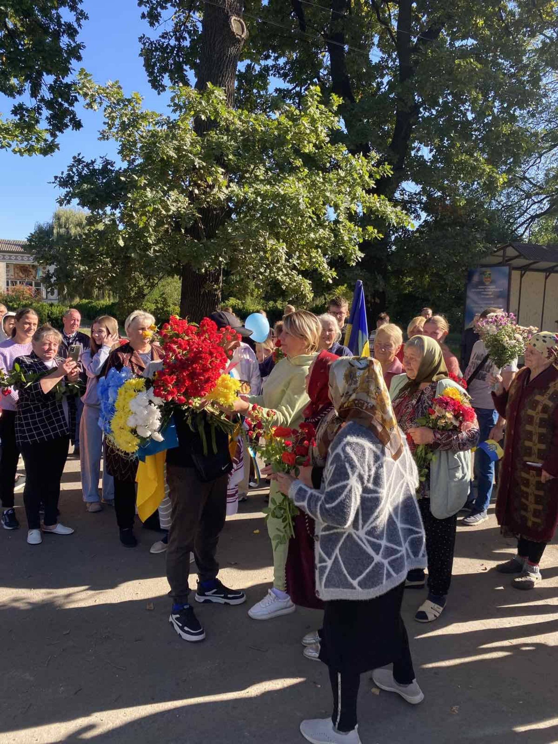 Щоб привітати захисника, мешканці громади вийшли з квітами, прапорами та традиційним хлібом-сіллю. Люди подякували Павлу Демчуку за відвагу та побажали йому швидкого одужання, миру і добра.