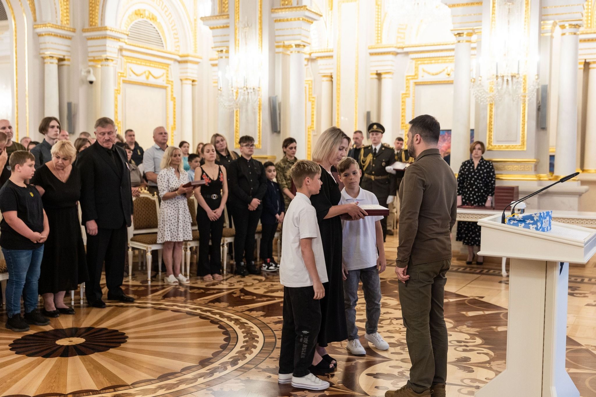 Учора, 6 червня, в Білій залі Героїв України Маріїнського палацу в Києві президент Володимир Зеленський вручив дружині та синам орден Дениса “Золота Зірка”. Про це повідомили у виконкомі Славутської міської ради.