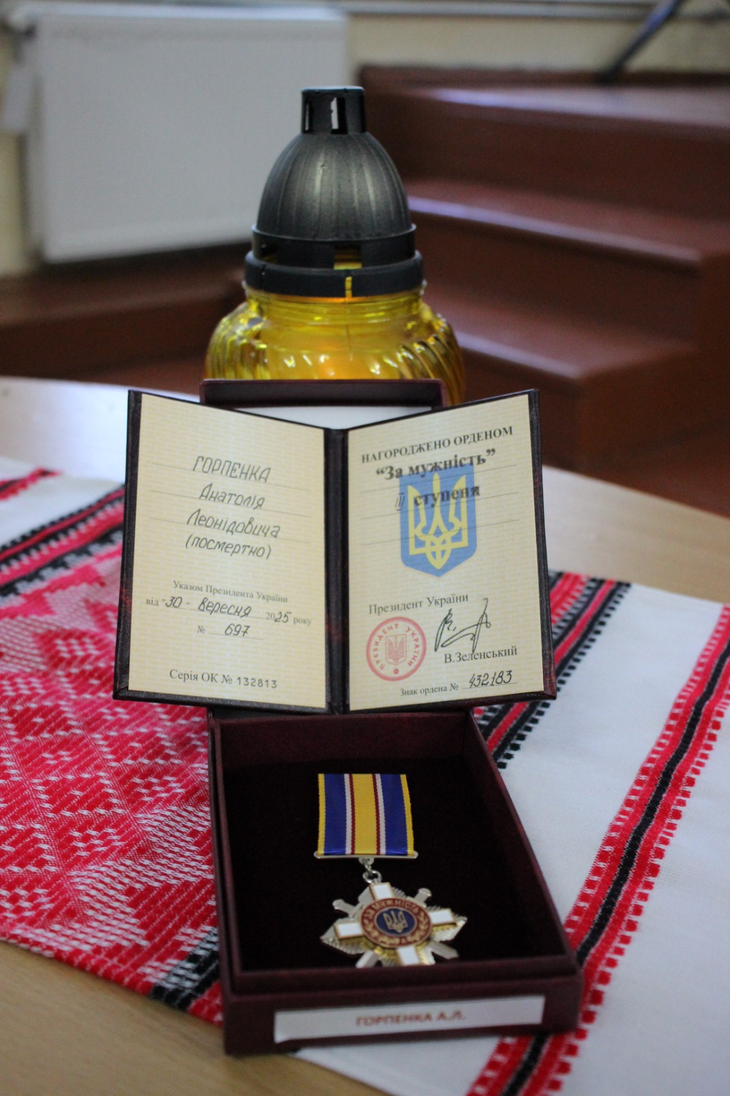 Відповідно до Указу Президента України Горпенко Анатолій Леонідович нагороджений орденом «За мужність» ІІІ ступеня (посмертно). Нагороду вручили доньці Анастасії.