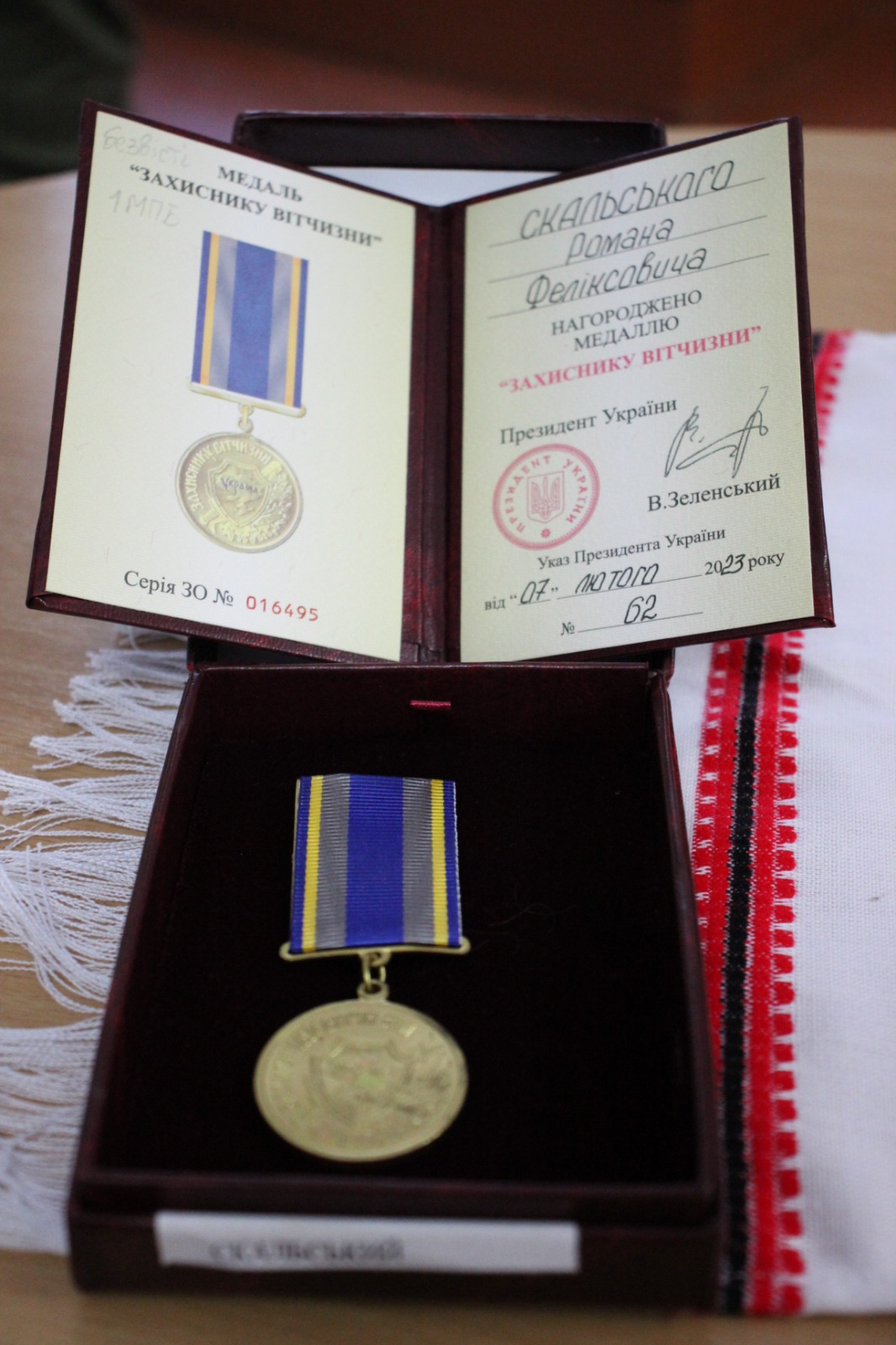Відповідно до Указу Президента України Скальський Роман Феліксович був нагороджений медаллю «Захиснику Вітчизни». Нагороду було вручено сину Антону.