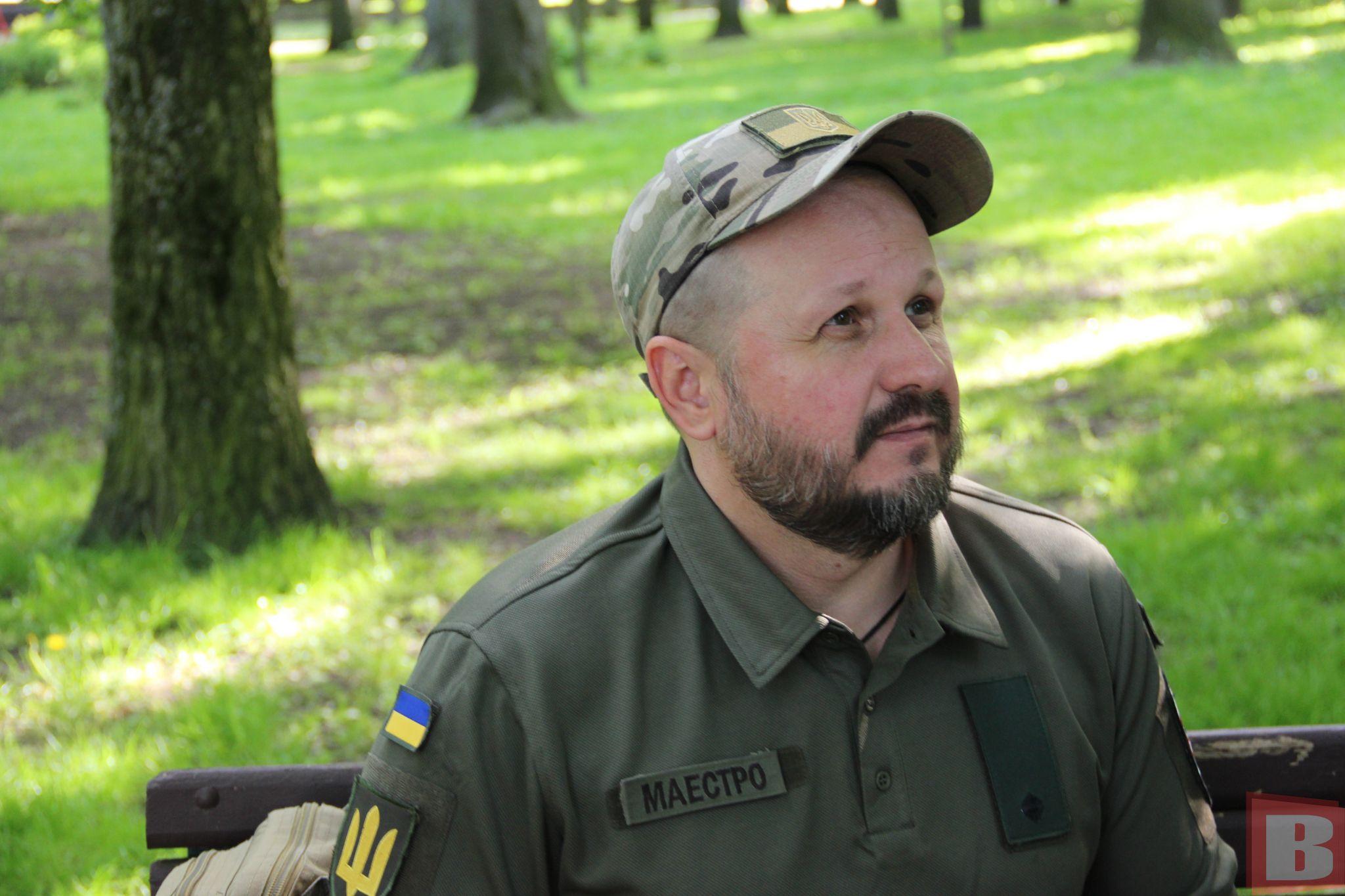 — 24 лютого о 5-й ранку мене сестра будить і каже, що почалася війна. Я приїжджаю в цю установу (вказує на міський територіальний центр комплектування та соціальної підтримки, — прим.автора) тут уже була черга, вона аж біля туалету закінчувалася (вбиральні, у парку ім. Шевченка, — прим.автора) і я зрозумів, що в цю чергу не потраплю. Уже 25-го о 7-й ранку я був перший біля військкомату. Вони мене знають, тому здивувалися і запитали, що я тут роблю. В мене довідка була про звільнення, кажу: “Хочу служити”. Добу вони вирішували мобілізовувати мене чи ні, врешті з’ясували, що в мене ненавмисний злочин, отже мобілізовувати можна — на рішення начальника ТЦК. І вже ввечері 25-го мені вручили військовий квиток. І десь через години дві, я вже пройшов ВЛК, я записався в наш 19-й батальйон в театрі Старицького. І за дві години мені зателефонував мій командир взводу і сказав, що збираємося на Озерній на отримання зброї. Відтак 25-го ввечері я отримав зброю, а 26-го був на посаді стрільця 3-го стрілецького відділення 3-го стрілецького взводу 1-ї стрілецької роти 19-го батальйону.