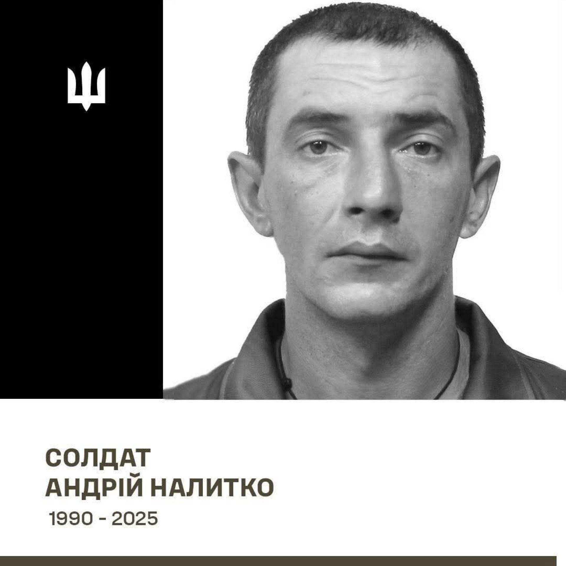 У Старосинявській громаді розповіли, що на фронті загинув Андрій Володимирович Налитко. Герой був із селища Стара Синява. На військову службу його призвали у лютому 2023 року. Андрій служив сапером відділення знищення та розмінування вибухонебезпечних предметів центру розмінування.