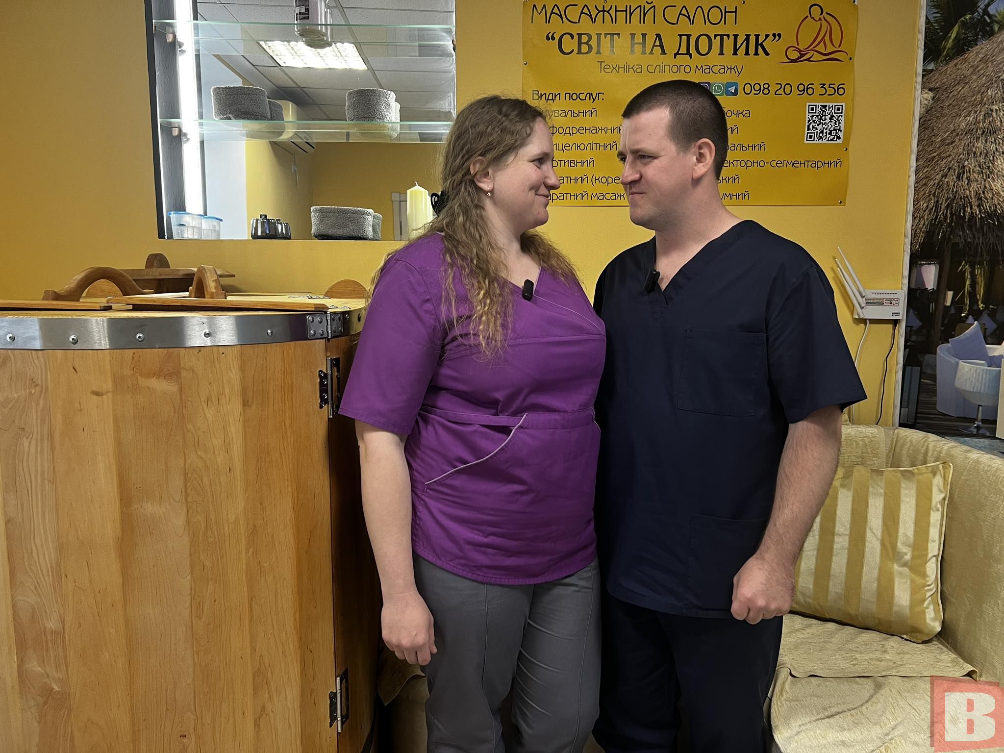Разом із дружиною вони є незрячими. Відчувають цей світ переважно на дотик. Працюють масажистами вже понад 5 років. А місяць тому відкрили свій салон у Хмельницькому. Назва – символічна. «Світ на дотик». Історію подружжя дізнавайтеся в цьому матеріалі.