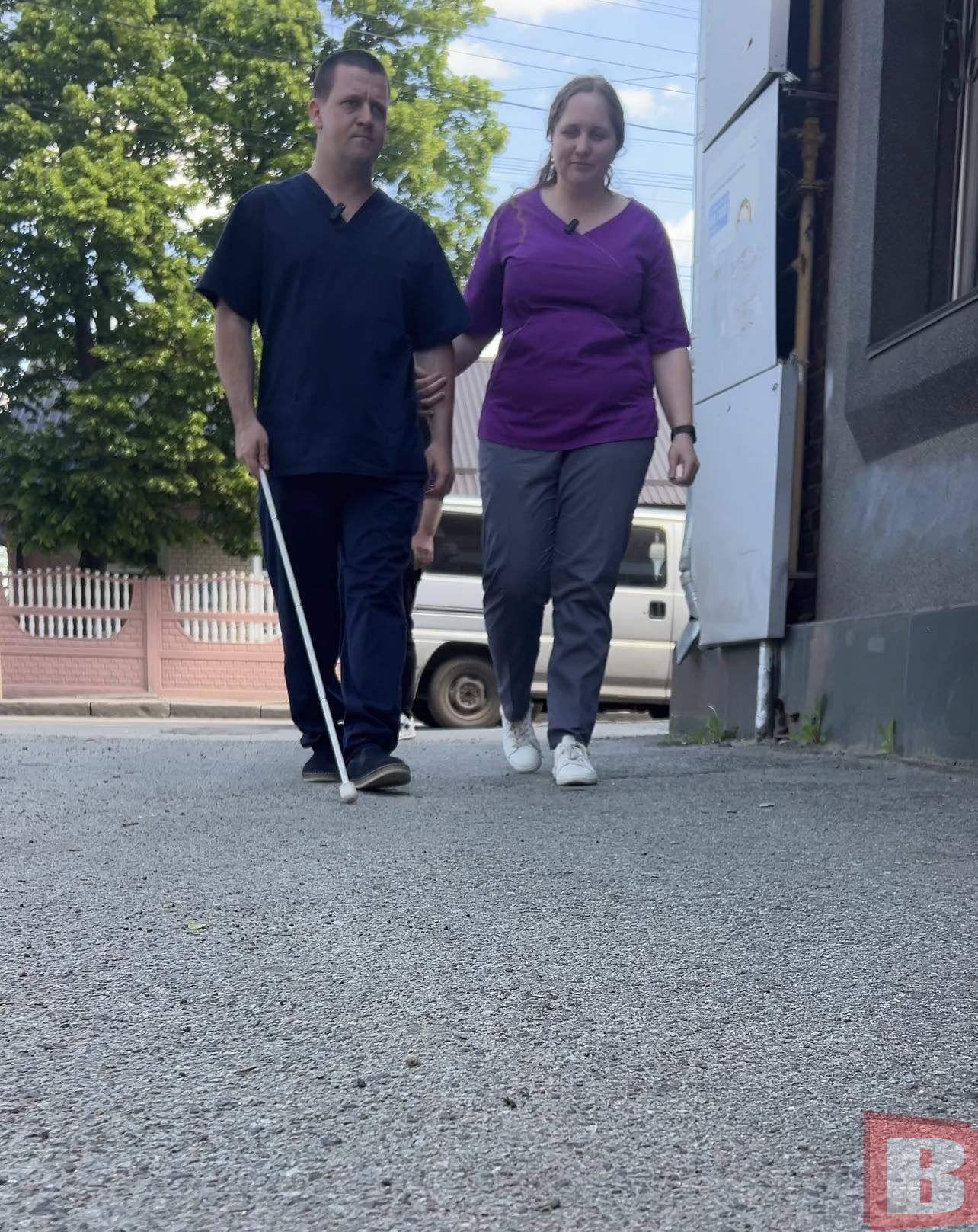 Подружжя каже про зручності, які помітили в Хмельницькому для людей з вадами зору. Зокрема – тактильна бруківка біля пішохідних переходів. Та світлофори зі звуковим супроводом. Обираючи в Хмельницькому кабінет для своєї діяльності, також зважали на деякі фактори. Це окремий вхід до будівлі. Відсутність багатьох сходинок. Близьке розташування до зупинок.
