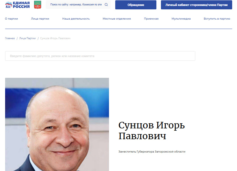«Hromadskе» вказує, що Ігор Сунцов втік до росії ще у 2021 році. Це підвтерджується даними із судового реєстру, цитуємо: «покинув територію України через пункт пропуску «Гоптівка» в напрямку рф». Згодом долучився до однієї з політпартій рф, а також став заступником губернатора тимчасово окупованої Запорізької області. За це Комунарський райсуд його заочно винним у колабораційній діяльності й призначив покарання у вигляді 8 років за ґратами.