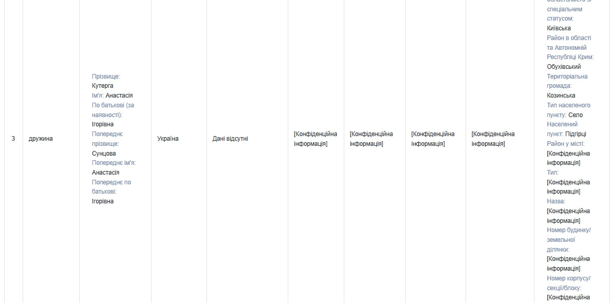 Однак у декларації за 2024 рік, поданої у березні 2025-го як заступника директора з питань цифрового розвитку, цифрових трансформацій і цифровізації БЕБ, з’являється дружина — Анастасія Ігорівна Кутерга і як вказано в документі, її попереднє прізвище — Сунцова.