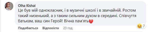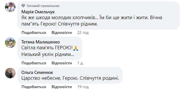 А під дописом в соцмережах знайомі, друзі висловлюють співчуття рідним і близьким загиблого Воїна, діляться спогадами про нього.
