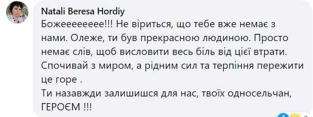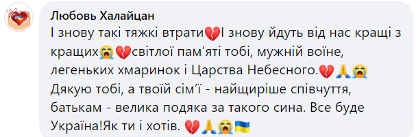 — Боляче... Війна забирає найкращих... Щирі співчуття рідним і близьким! Світла пам'ять Героям, які відлетіли на небо... На знак скорботи за загиблими 4-6 вересня в громаді оголошено Днями жалоби… — повідомив Михайло Посітко.