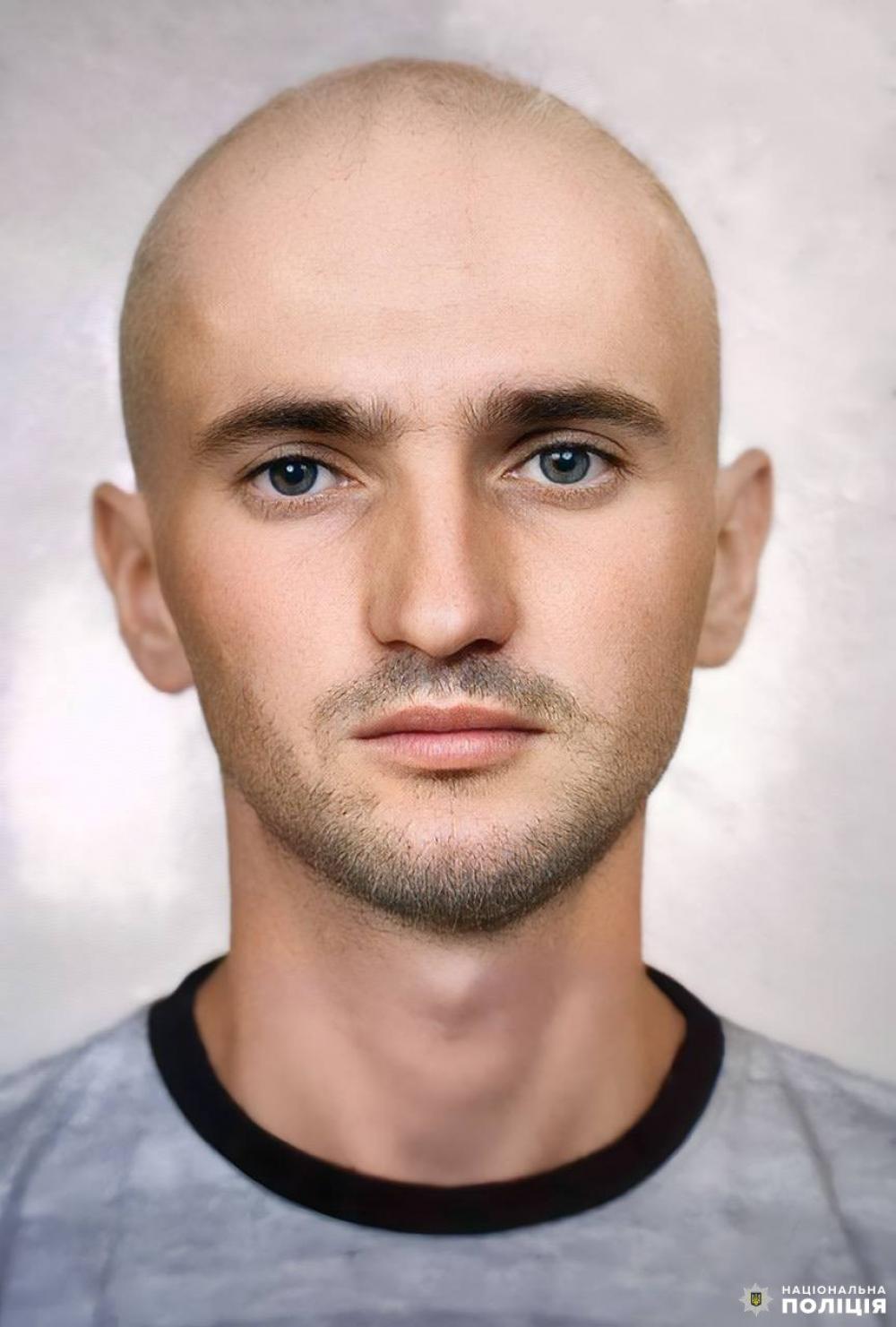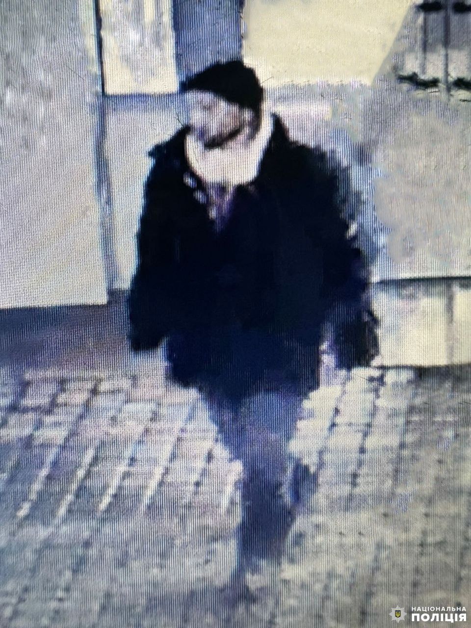Був одягнений у чорну куртку та шапку, сині джинси, білий светр, кросівки темно-зеленого кольору.