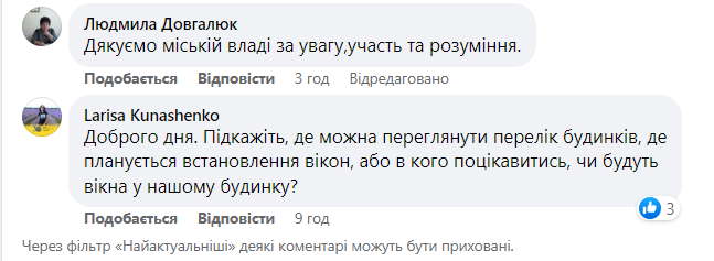 У коментарях під звісткою люди здебільшого дякую, однак є й такі, що дивуються. Мовляв, а можна перелік, де ті вікна встановлюватимуть, а то замірів ніяких ніхто ще не робив.