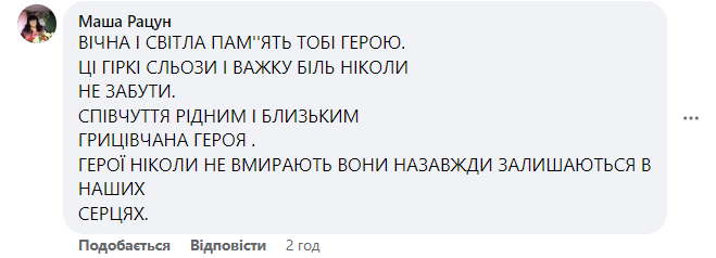 А під постом – співчуття знайомих, друзів, побратимів рідним і близьким загиблого Героя.