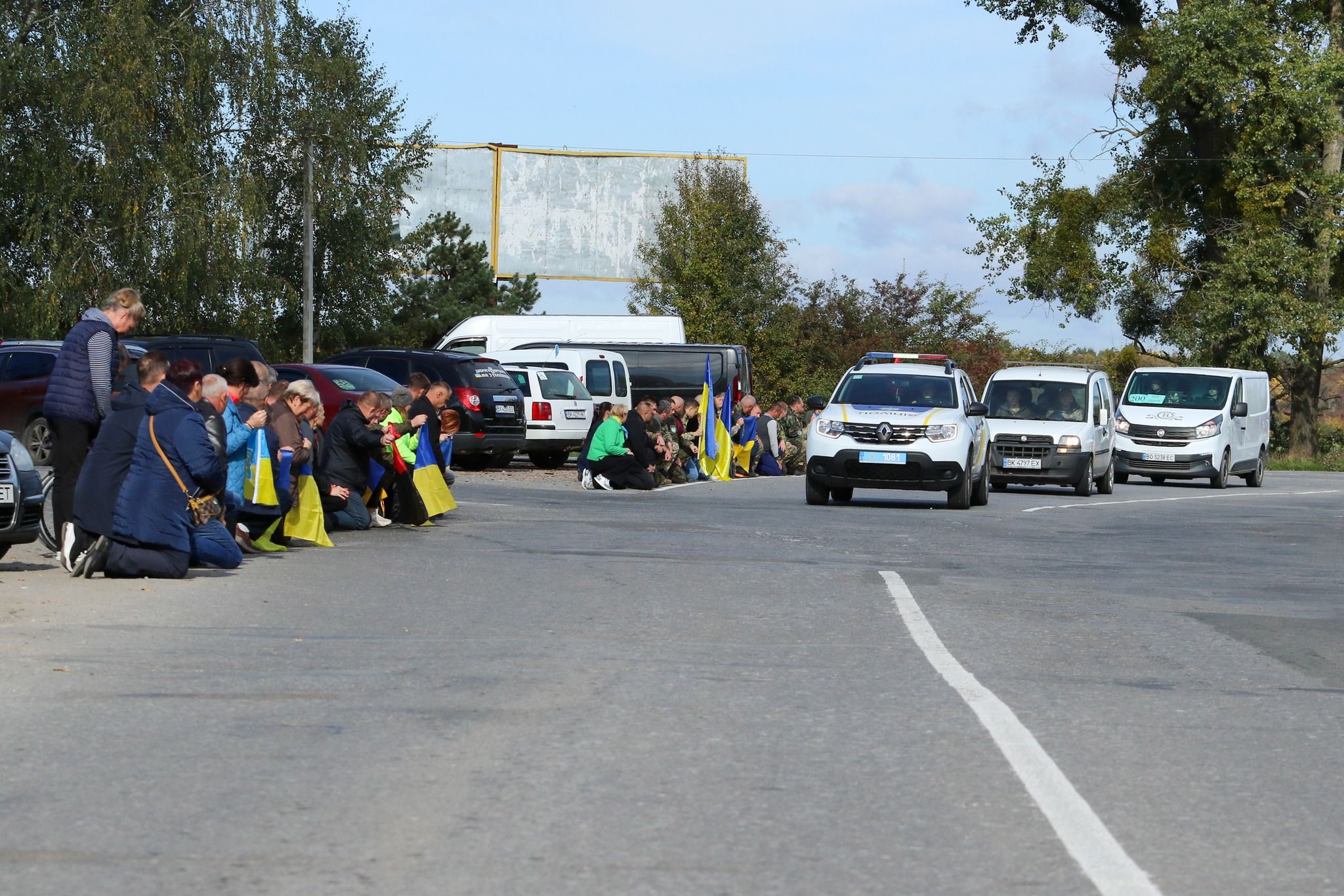А Нетішин 10 жовтня зустрів свого Героя Артема Белінського. Навколішки, з тугою в серці, зі слізьми, квітами й синьо-жовтими прапорами.