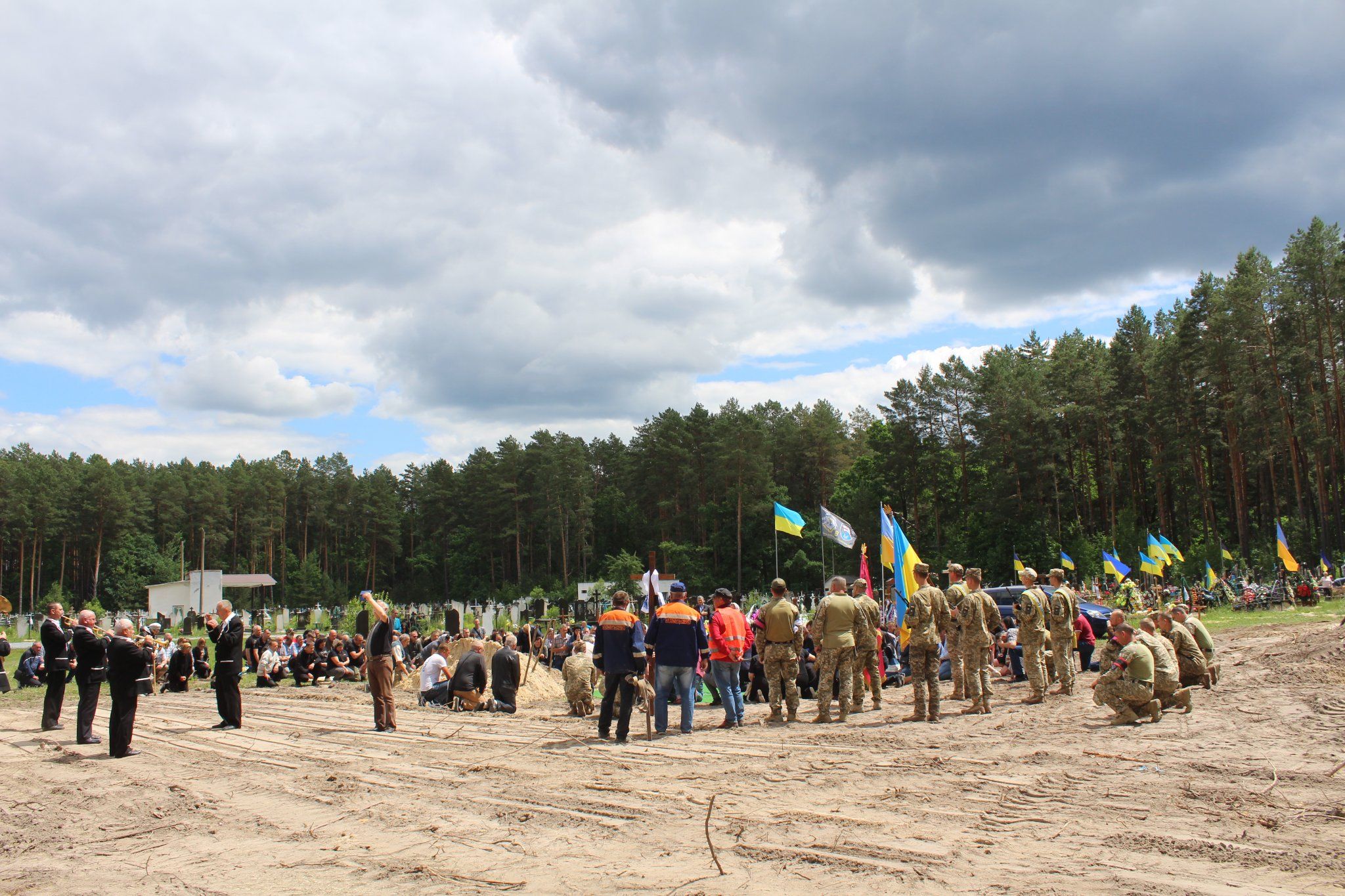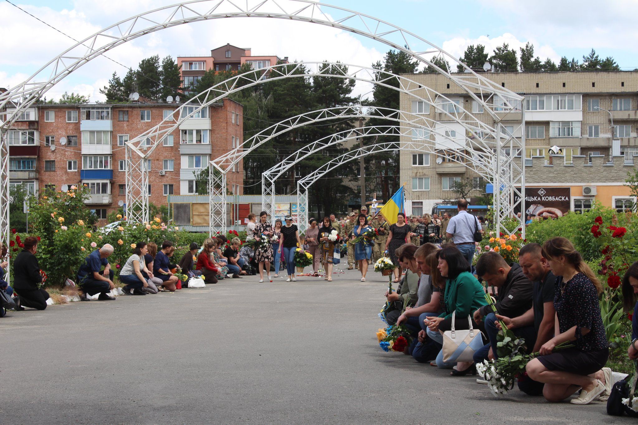 Прощалися з військовим у рідному місті. Живим коридором, прихиливши коліно, громада вшанувала полеглого бійця. Похоронили Сергія на «Новому кладовищі» із усіма військовими почестями.