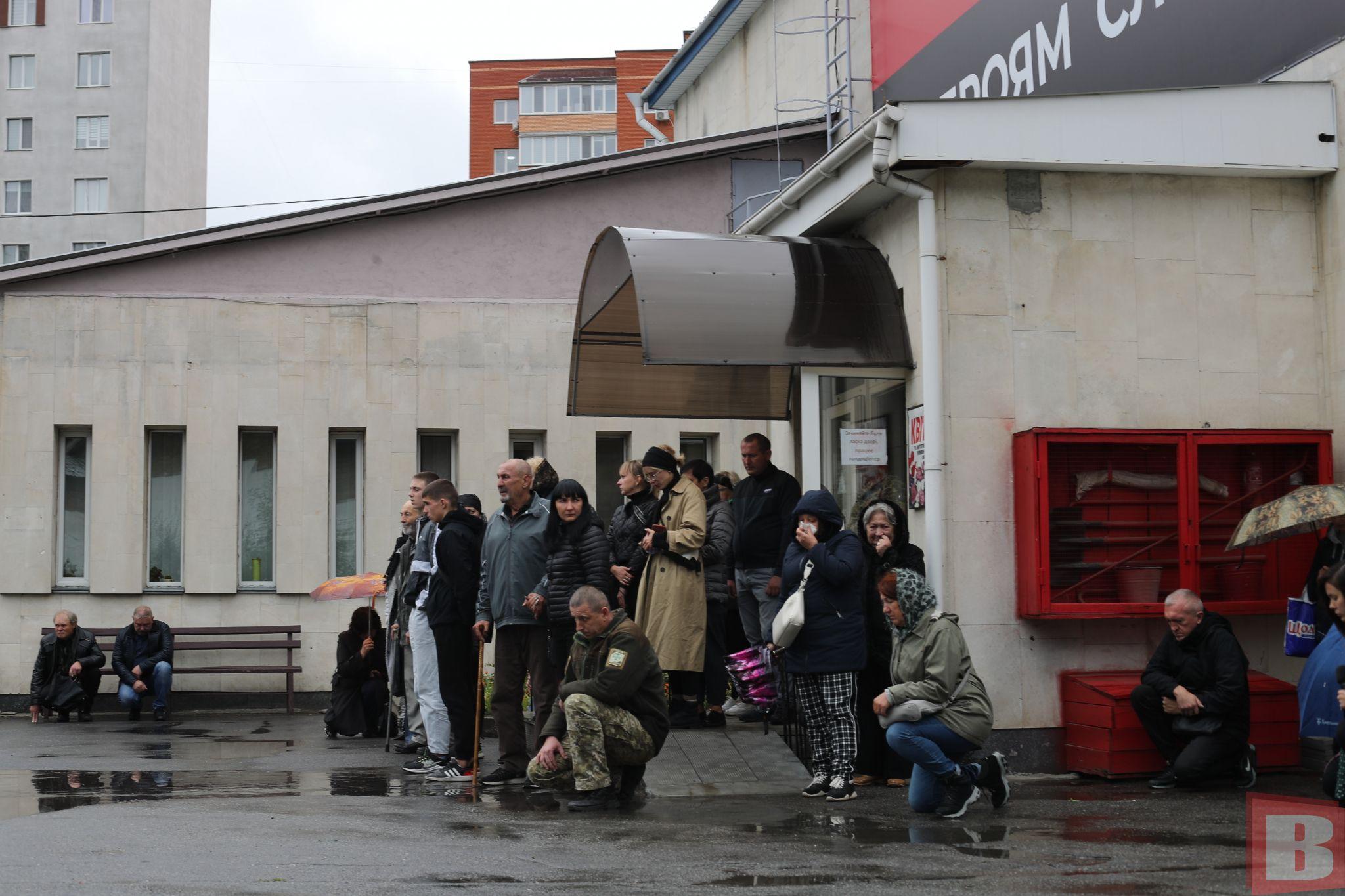 Вже о 14:30 на Святослава Хороброго знову зібрався натовп. Жінки у чорних хустинах, друзі зі сльозами на очах та військові. Усі прийшли попрощатися із загиблим Героєм - Вадимом Бичком.