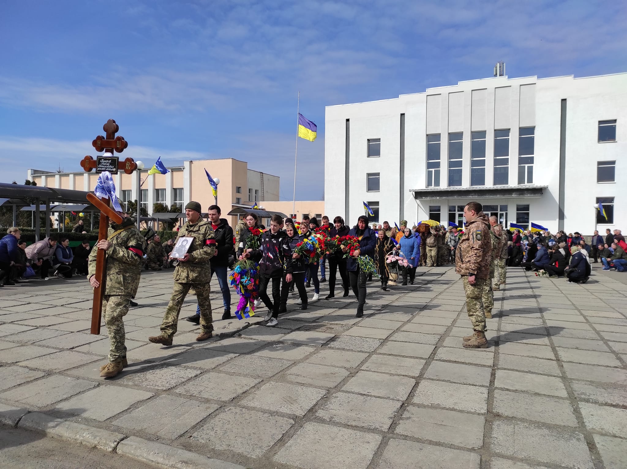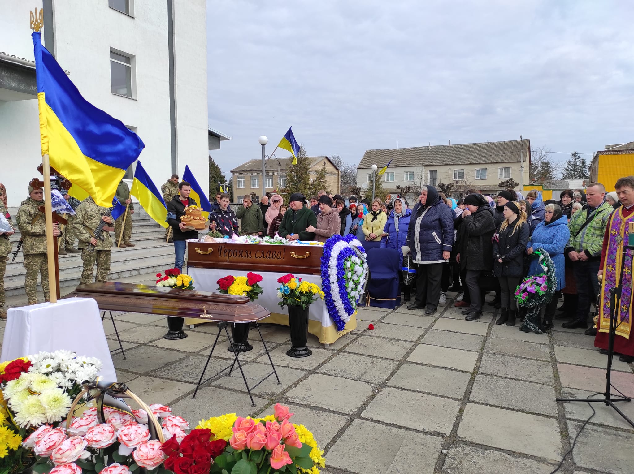 Тужливе «Пливе кача…» линуло вранці 24 березня над центральною площею Ярмолинець. Громада прощалася зі загиблим Героєм, старшим стрільцем Мар’яном Григор’євим. 21-річний Воїн загинув 20 березня поблизу Мар’їнки, що на Донеччині.