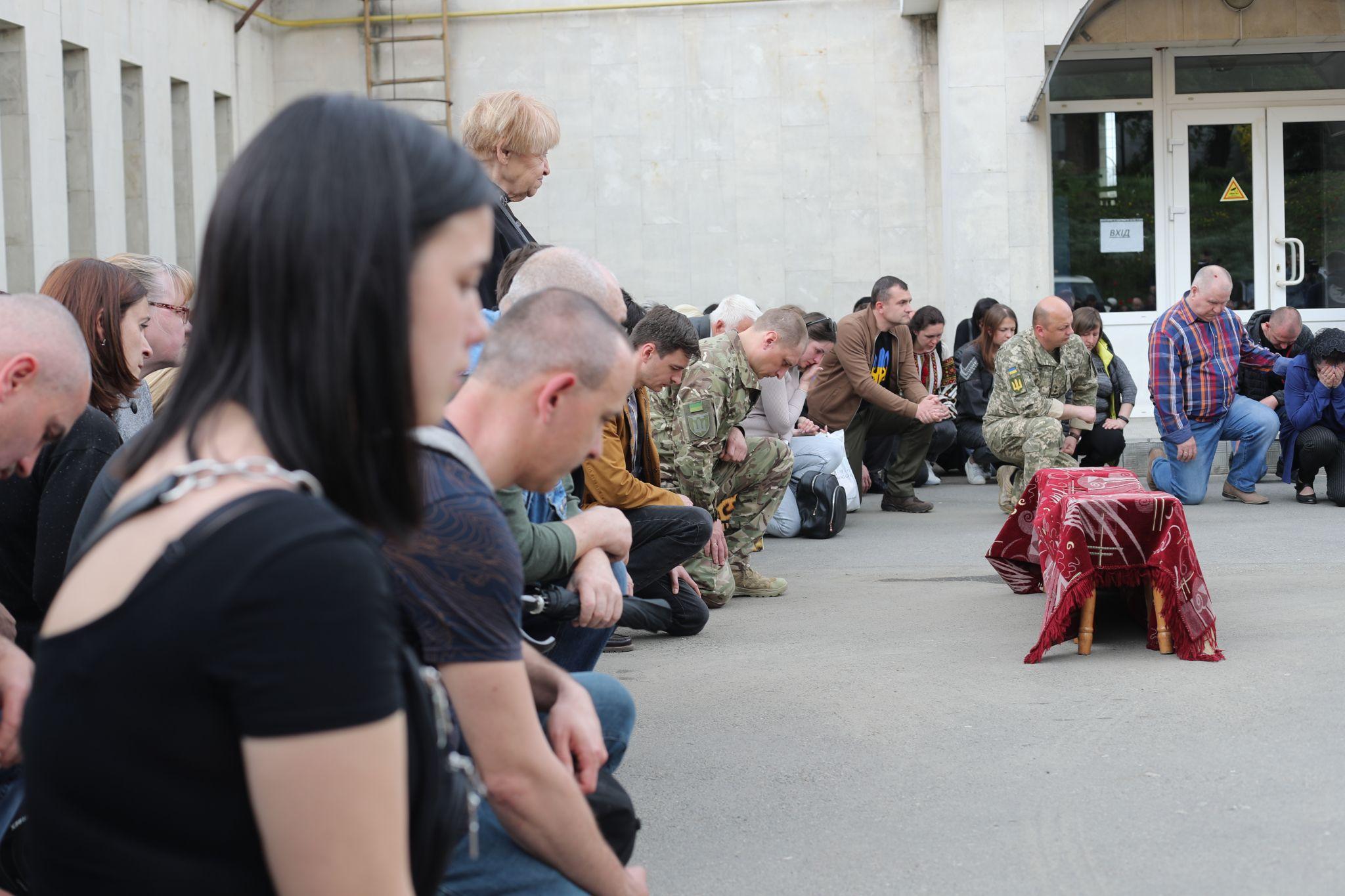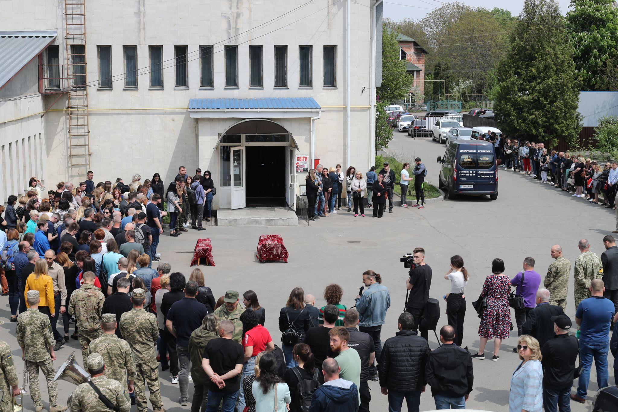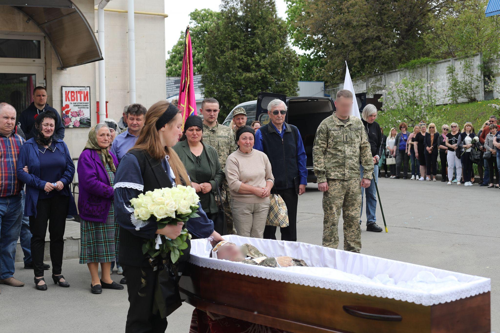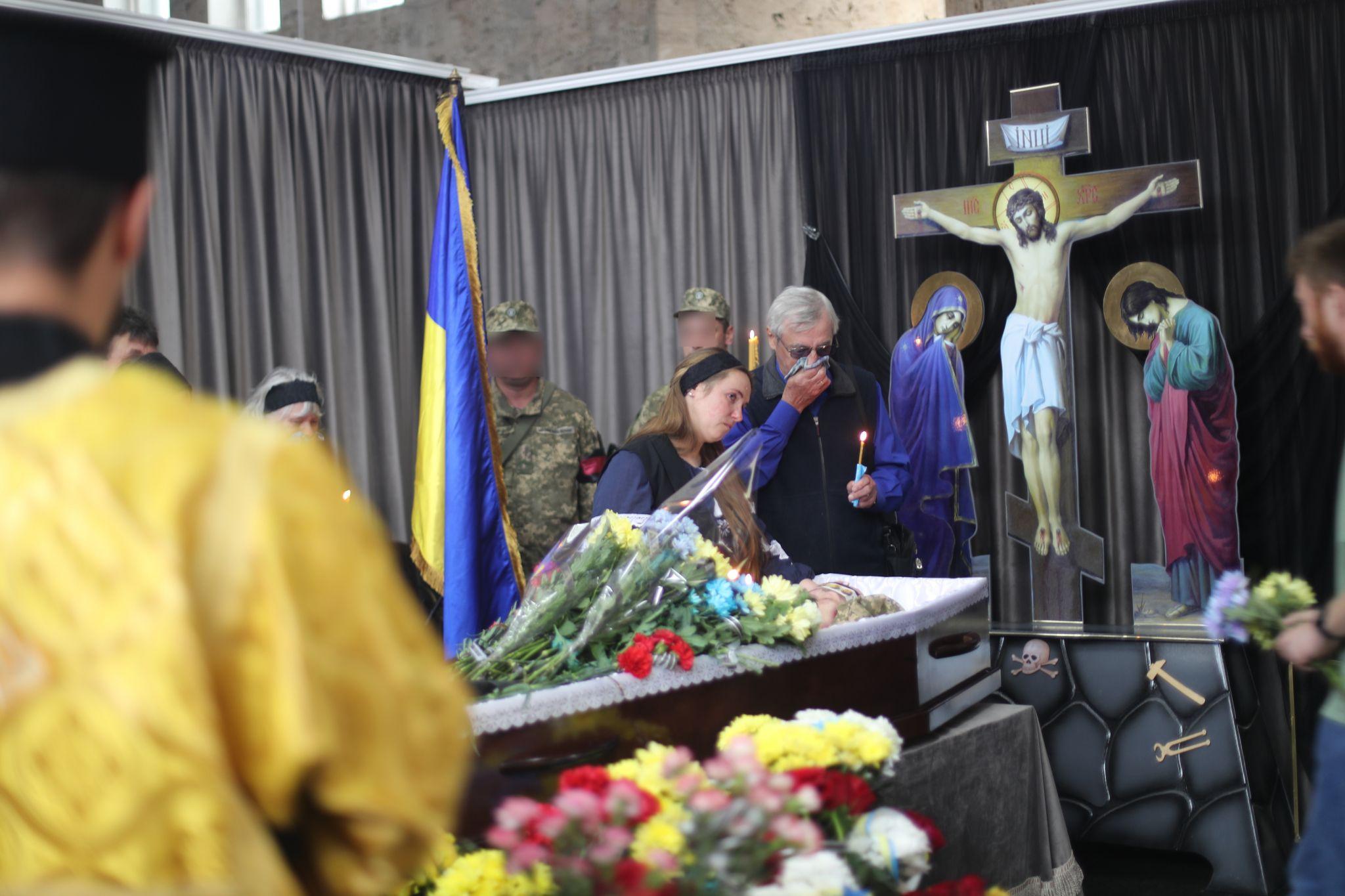 Сьогодні, 13 травня, близько 12 години до Будинку траурних обрядів на Святослава Хороброго прийшли чимало людей. До зали, де у труні лежав загиблий воїн, вишикувалася ціла черга. Всі несли живі квіти. Жовто-блакитних хризантем було найбільше. Їх клали до труни. Деякі схилялися перед воїном на коліна. На очах виступали сльози. А в погляді - співчуття до дружини Героя і тепер вдови, Анастасії.