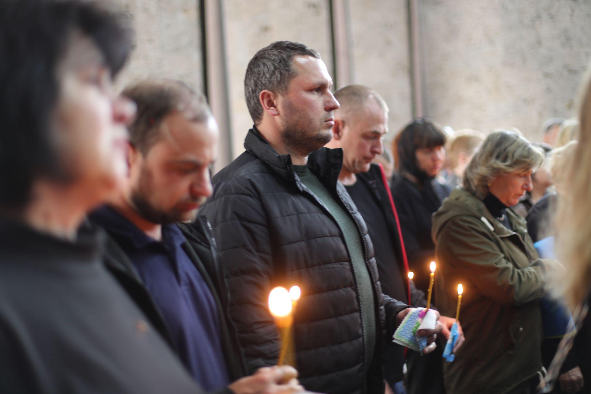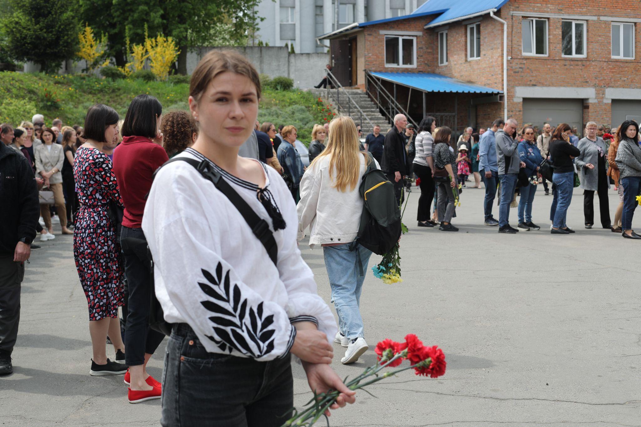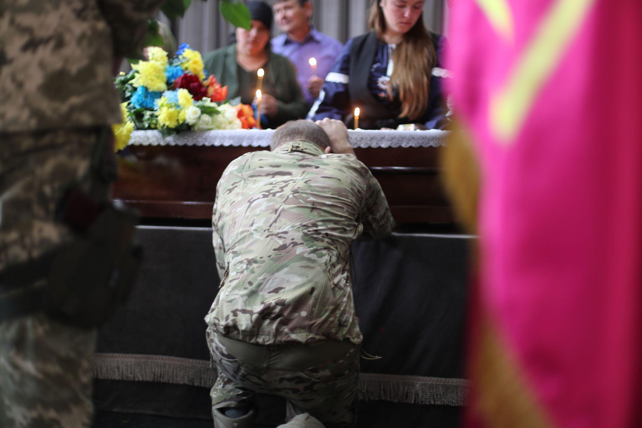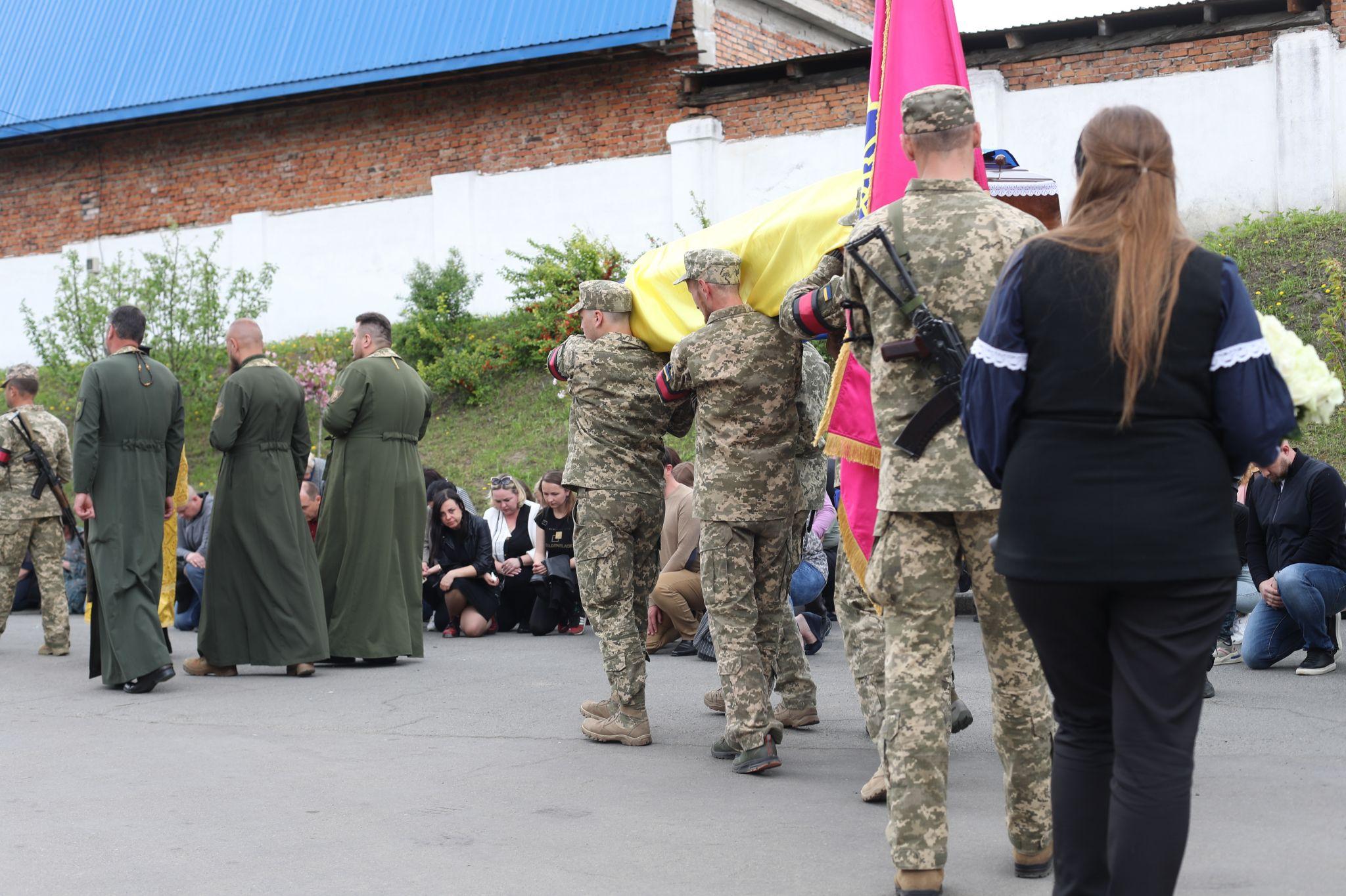 Сьогодні, 13 травня, близько 12 години до Будинку траурних обрядів на Святослава Хороброго прийшли чимало людей. До зали, де у труні лежав загиблий воїн, вишикувалася ціла черга. Всі несли живі квіти. Жовто-блакитних хризантем було найбільше. Їх клали до труни. Деякі схилялися перед воїном на коліна. На очах виступали сльози. А в погляді - співчуття до дружини Героя і тепер вдови, Анастасії.
