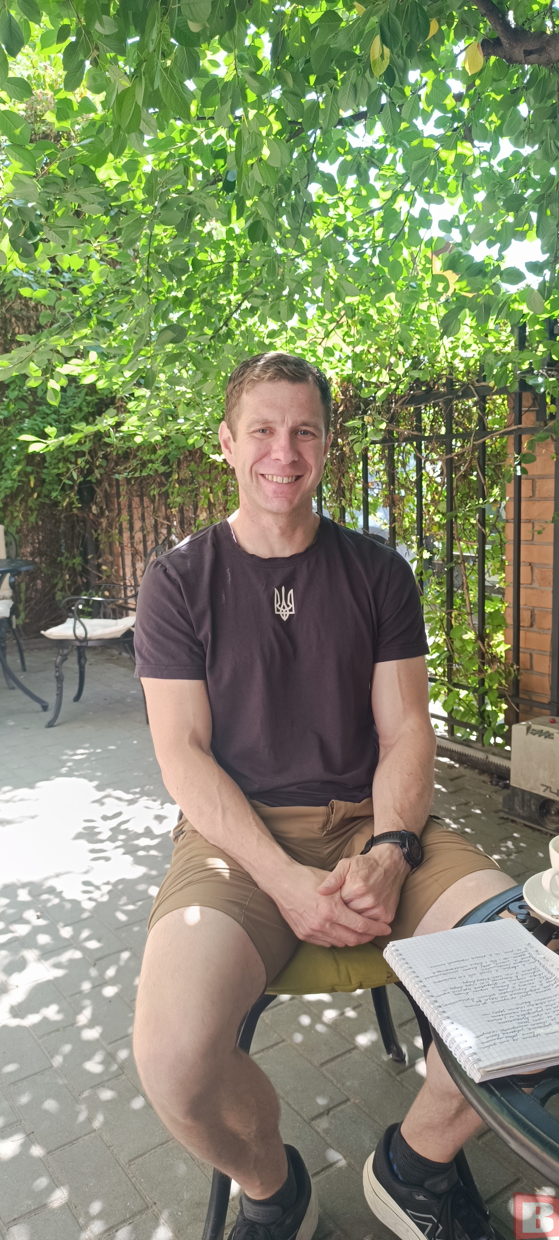 Четвер, обідній час. На терасі затишної кав’ярні триває заняття. Чоловік з американським акцентом із тризубом на футболці вільно розмовляє українською мовою. Невеликі паузи для роздумів і слова швидко перетворюються у речення.