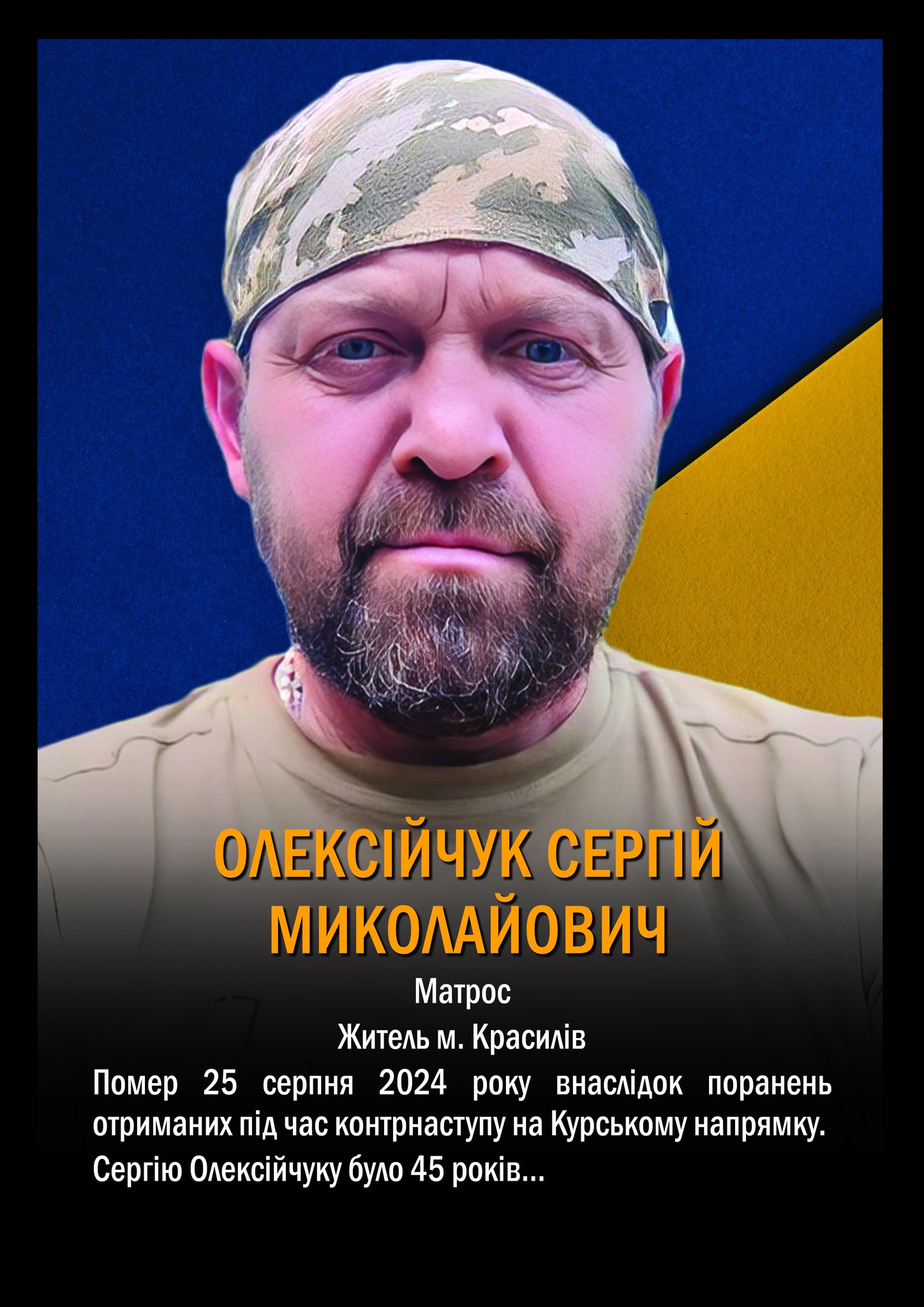 Життя Сергія Олексійчука війна обірвала у 45 років. Він мешкав у Красилівській громаді.
