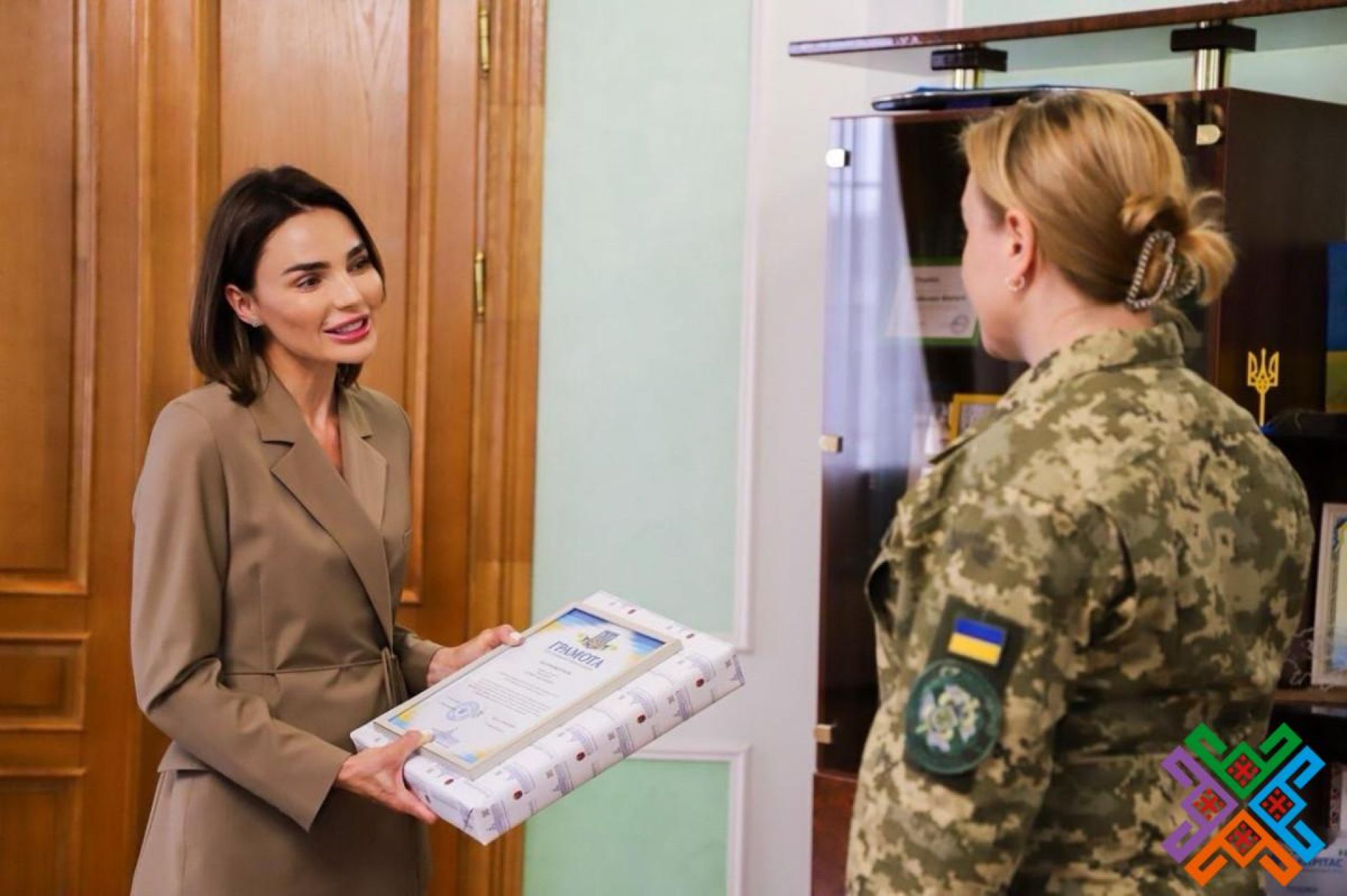 Під час зустрічі Тетяна Чалаван отримала грамоту Хмельницької обласної ради та подарунок. Про це повідомили у пресслужбі обласної ради.