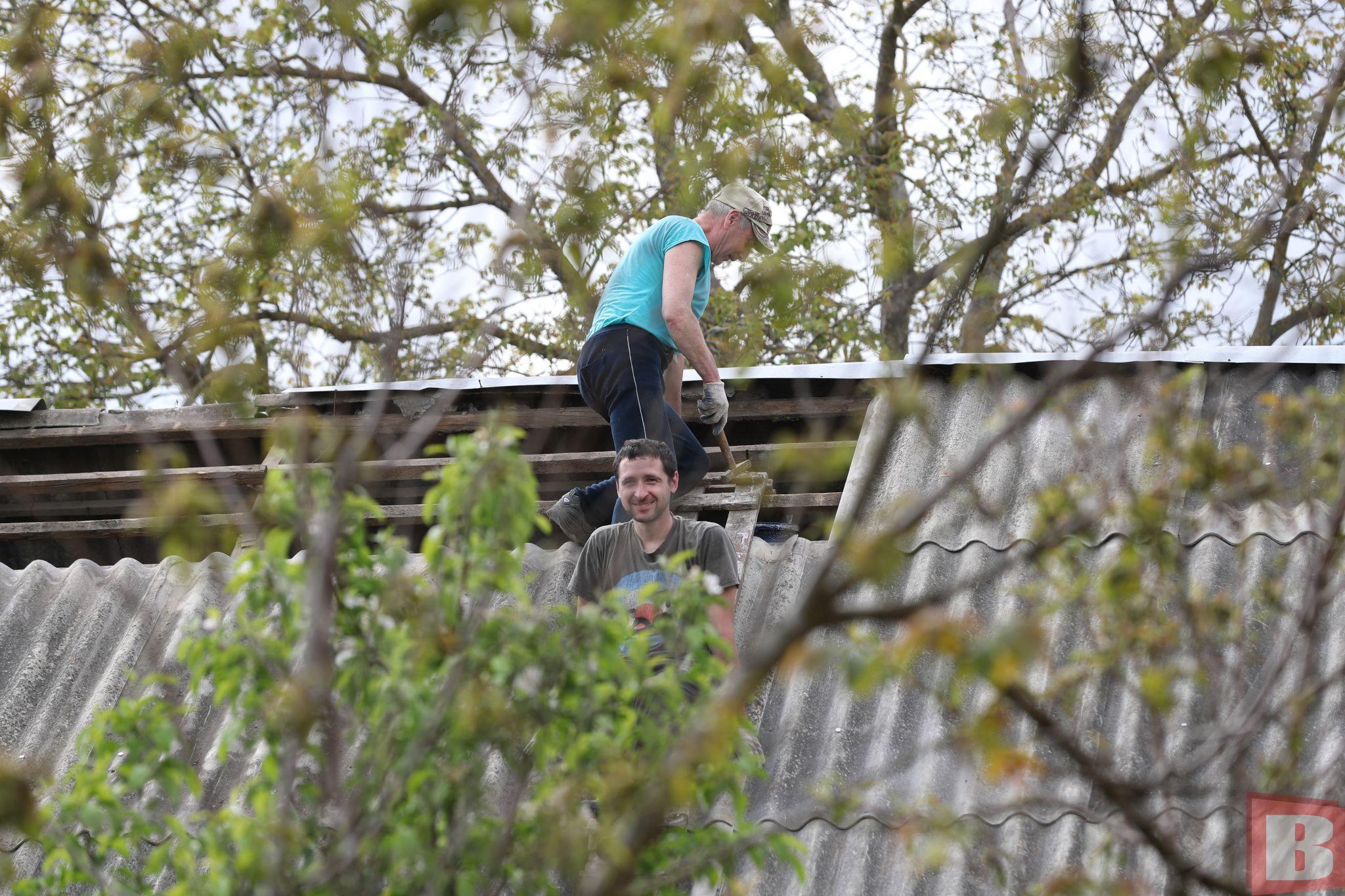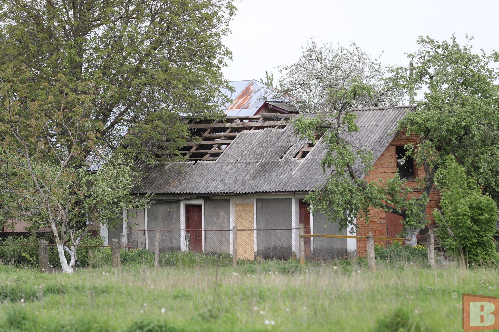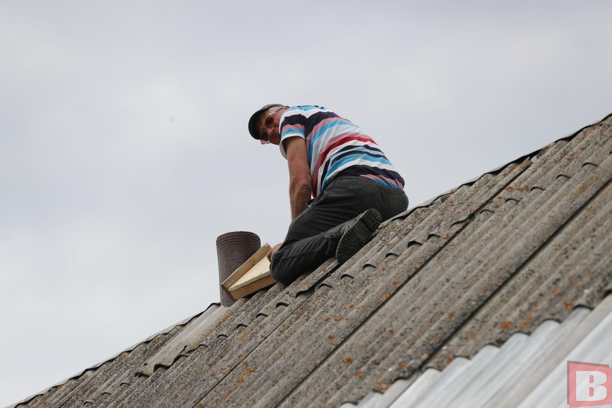На годиннику близько 15. На багатьох господарствах у Грузевиці кипить робота. Бригади майстрів лагодять дахи, вставляють вікна чи займаються іншими справами з відновлення. Так, на одному подвір’ї зустрічаємо чоловіків з Летичева. Кажуть, приїхали, аби добровільно допомогти місцевим. Адже чимало з них залишилися без даху над головою.