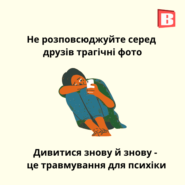 - Ці емоції дуже важко стримувати і зрозуміло, що і не потрібно. Є таке поняття, як травма свідка, яка означає що люди, які є свідками трагічної події, страждають не менш ніж сама жертва. Свідок отримує психологічну травму, бо він все бачив, але не міг цьому протидіяти. Оминати ці фото в мережі, не дивитися і не розповсюджувати - це важливо. Це небезпечно з тої причини, що кожного разу коли ми дивимося знову й знову - це додаткове травмування для нашого мозку.