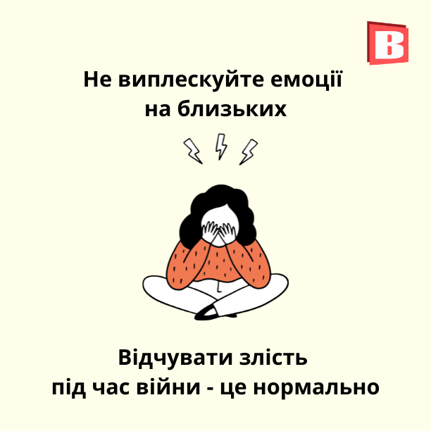 Направляти енергію потрібно у позитивне й креативне русло. Треба щось творити. Якщо цього робити не дає можливість агресія, тоді треба використовувати свою енергію у корисних справах - колоти дрова, наприклад. Зараз є безліч справ, які потрібні на підтримку військовим чи волонтерам.