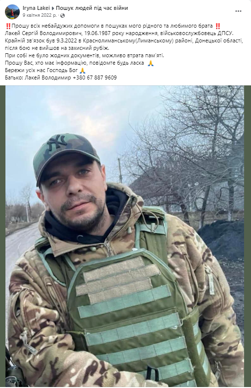 Ще одна гірка втрата надійшла на Хмельниччину. Із березня 2022 рідні шукали Сергія Лакея. Він мешкав Дунаївцях.