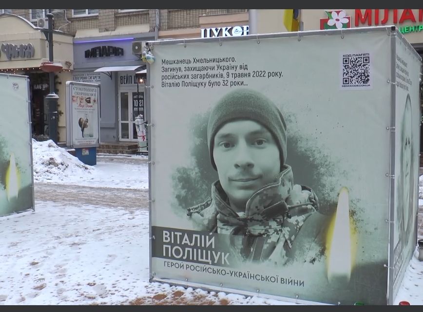 - Тепер поруч із портретом розміщують QR-коди пам’яті, аби хмельничани могли дізнатись про захисників більше.