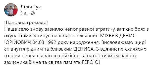 Про точну дату та час прощання з Героєм поки не інформують.