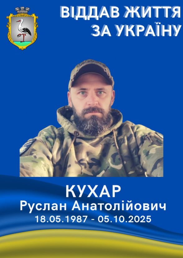 В Дунаєвецькій громаді повідомили про загибель старшого солдата Кухаря Руслана Анатолійовича. Життя воїна обірвалось 5 жовтня 2025 року під час виконання бойового завдання. Це сталось поблизу населеного пункту Куп’янськ Харківської області. Руслан був жителем села Чаньків.