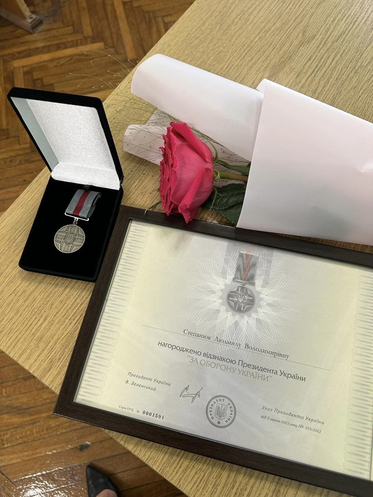 «Ця висока відзнака є визнанням її вагомого внеску у захист країни та невтомну професійну діяльність у надзвичайно складних умовах», йдеться на сторінці обласної лікарні.