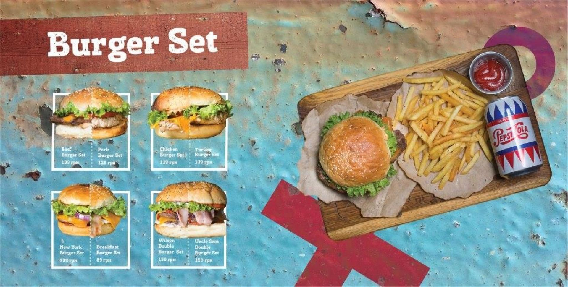 Бургери - це класичне поєднання продуктів (яловичина, курка) та фірмова серія Premium Burger (яловичина, курка та нова качка). Присутній і великий родинний Family Burger вагою 1 кг.