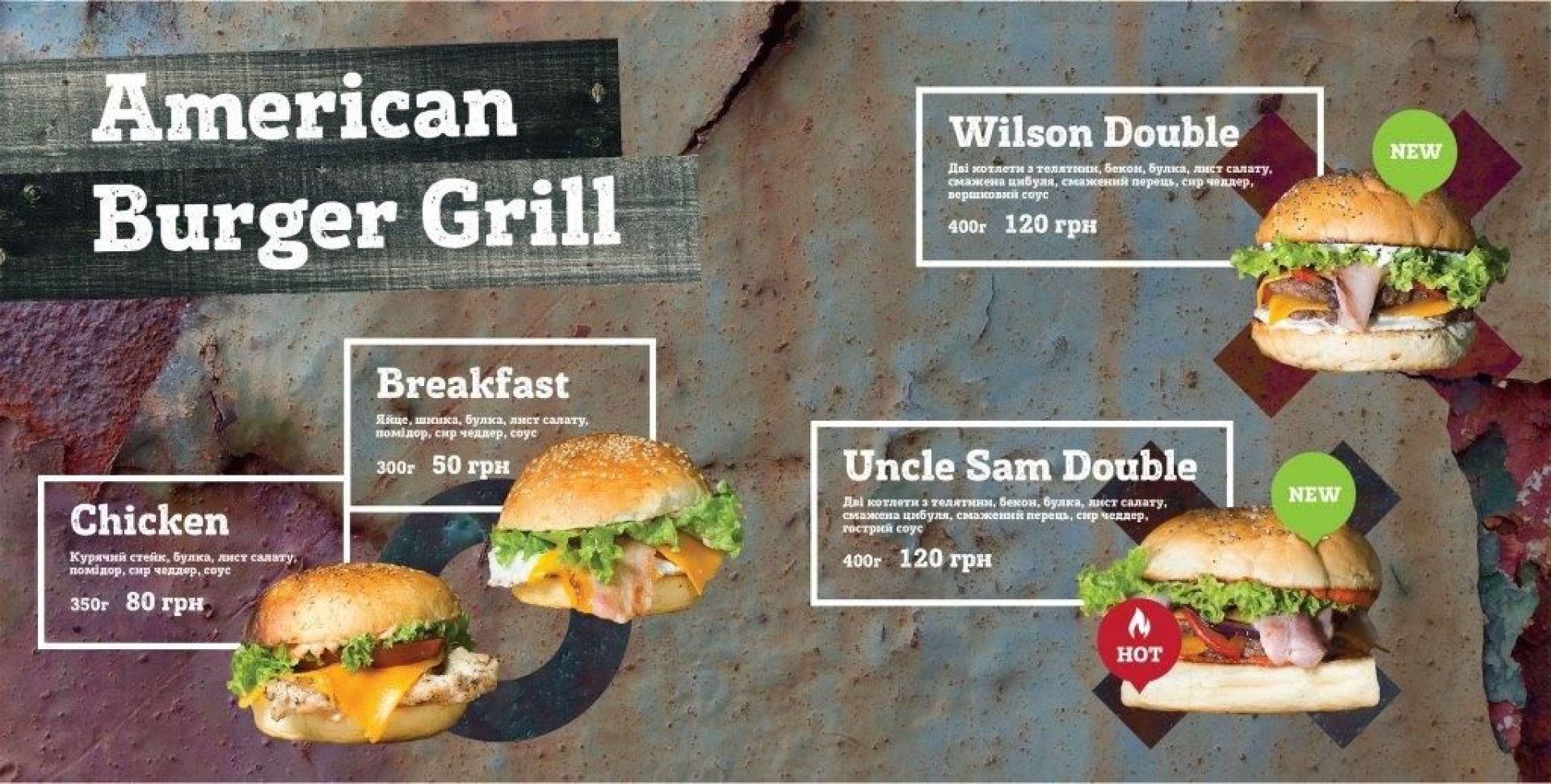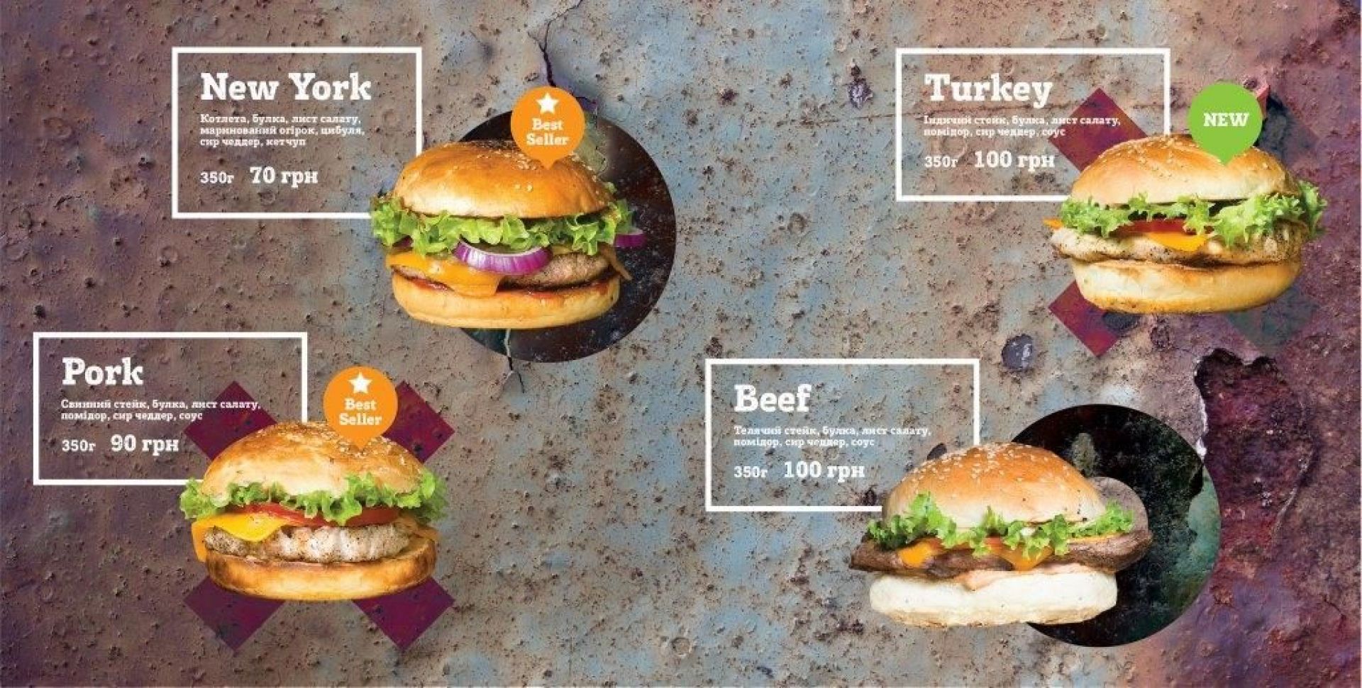 - Ексклюзивні та найкращі бургери, які готуються на спражньому грилю, по американській рецептурі виключно з найсвіжіших і екологічних продуктів під керівництвом шеф кухара з 10 річним досвідом.